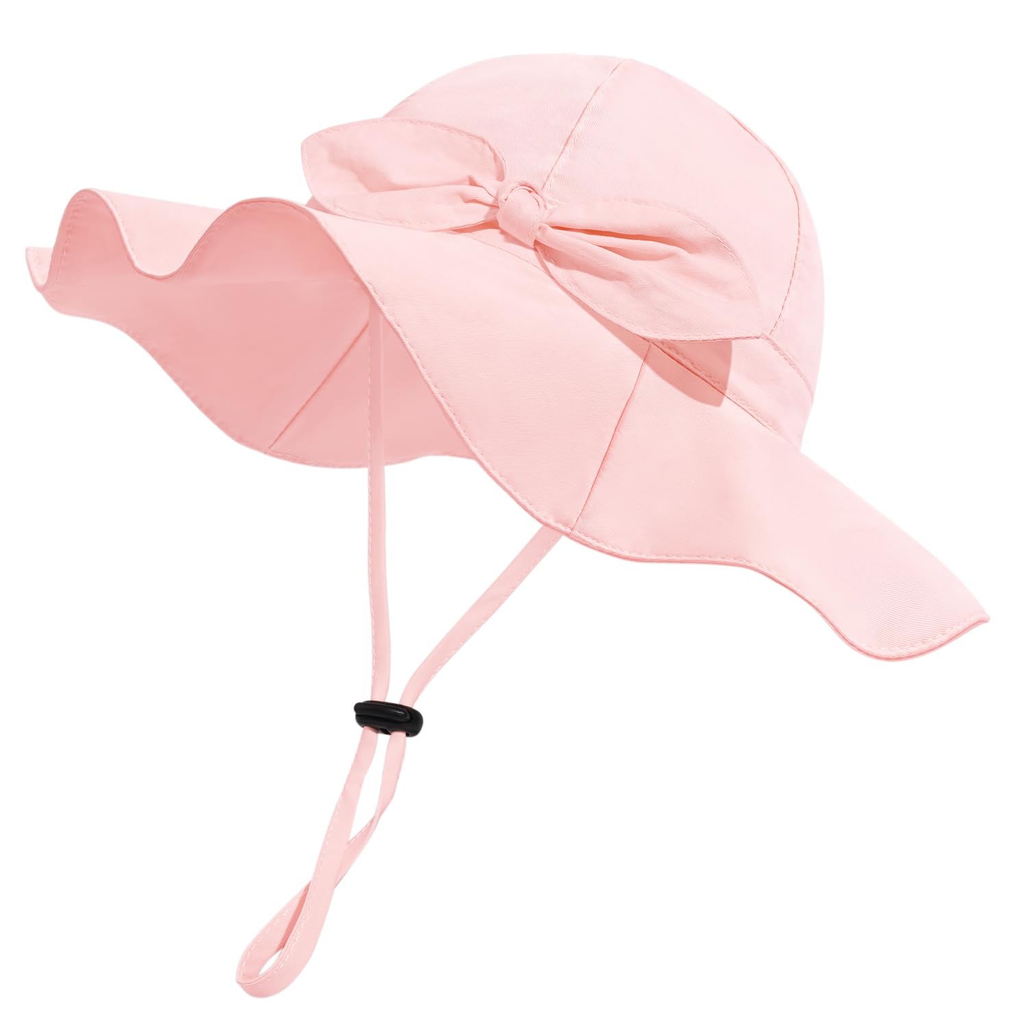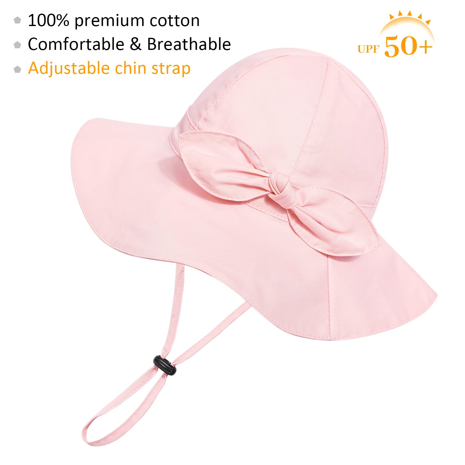 FASHIONABLE: Wide brim baby sun protection hat with bow tie is the perfect accessory for you. Comfortable, extra soft lining & patterned design, perfect for all day wear.Breathable material keeps baby cool.