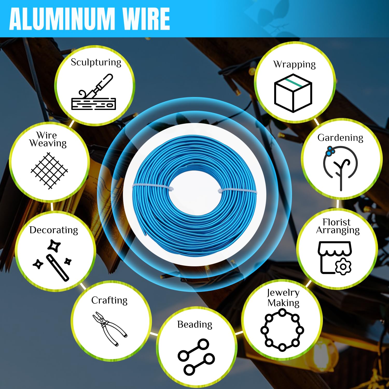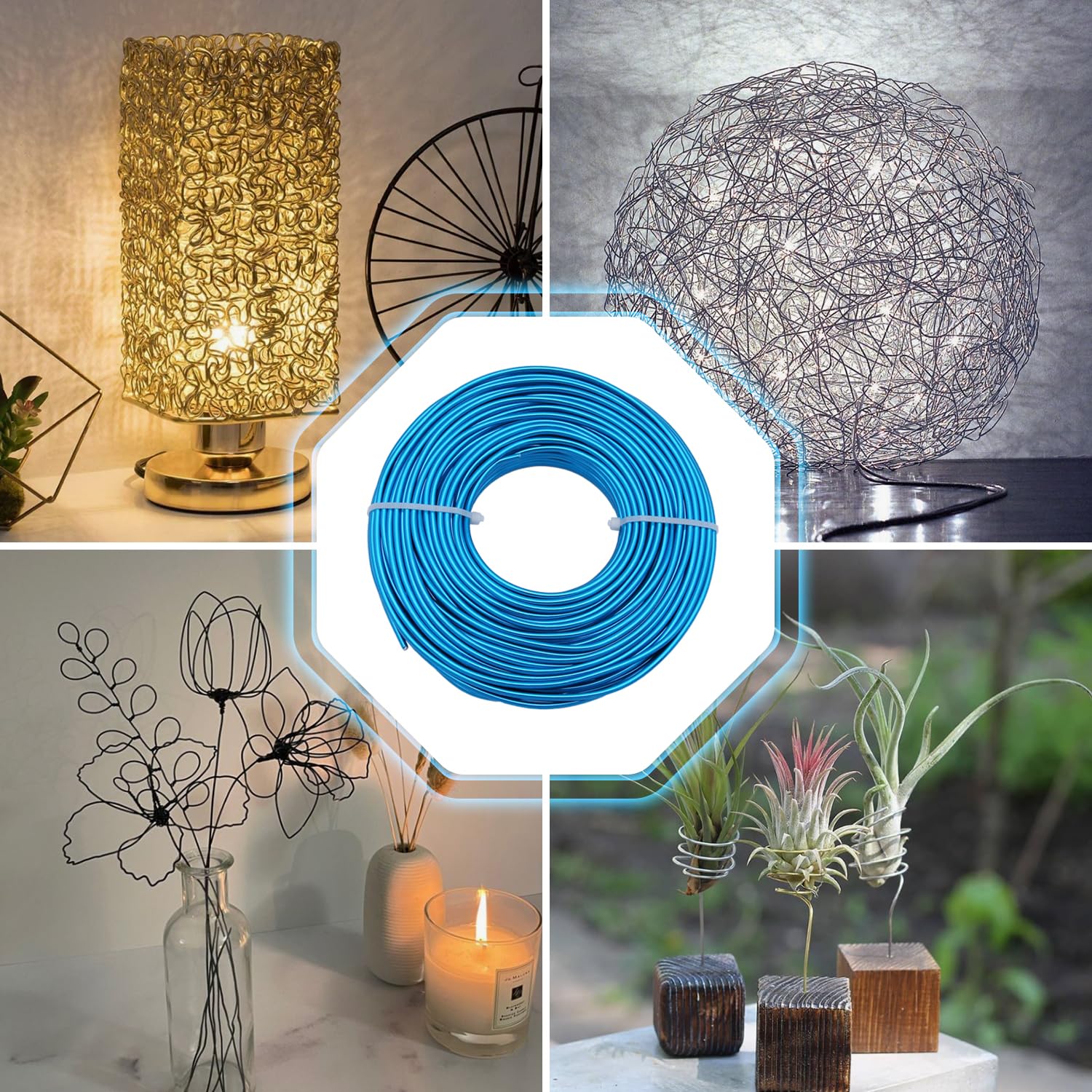 【ALUMINUM CRAFT WIRE SIZE】: 14 Gauge(2mm) in thickness, 100 Feet (30m) in length,Lake Blue