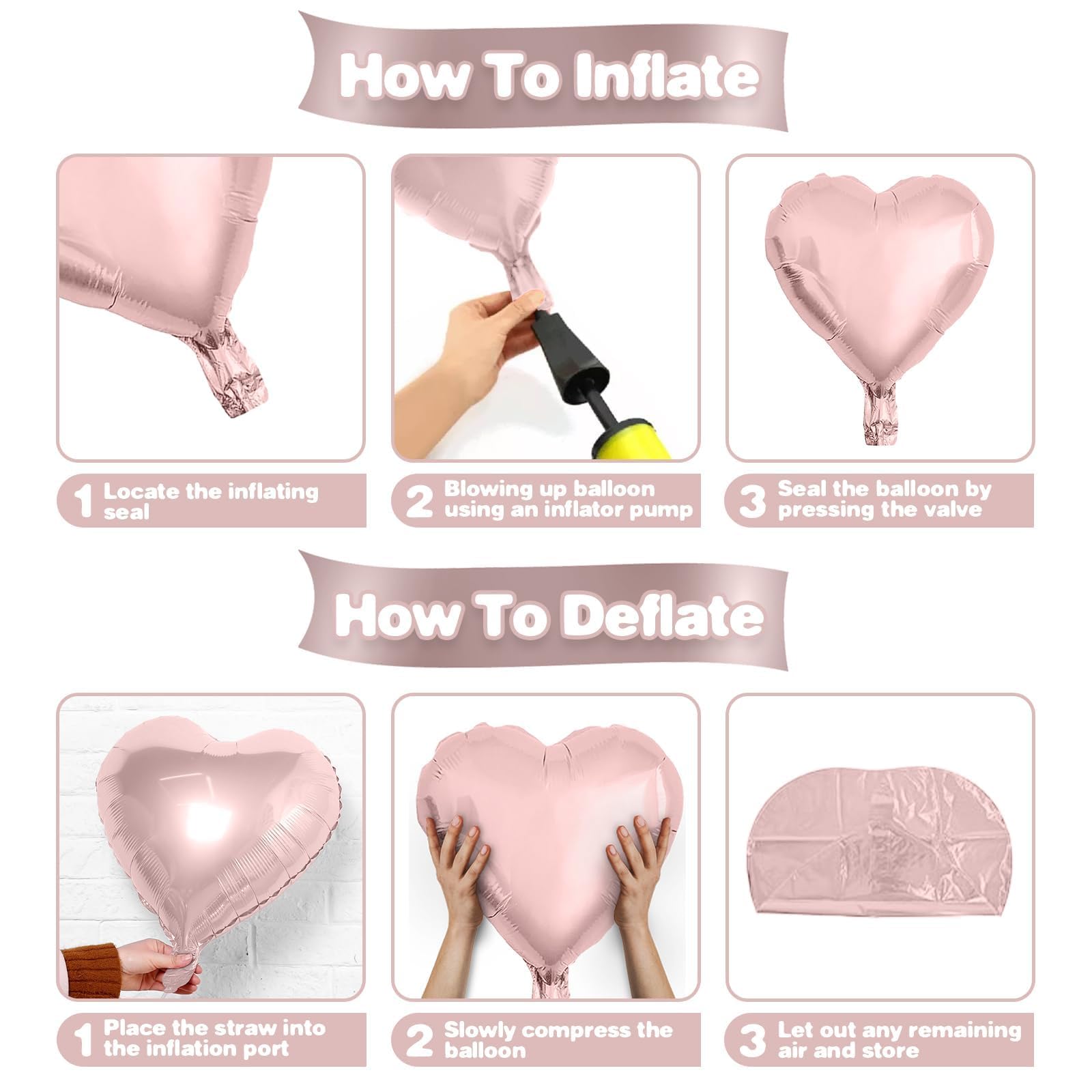 Easy Setup: Inflate the light pink heart balloons with a balloon pump or helium tank. After inflating, secure the light pink heart balloons with the included ribbon for a polished look. These light pink heart balloons are easy to assemble and disassemble, making decorating quick and effortless.