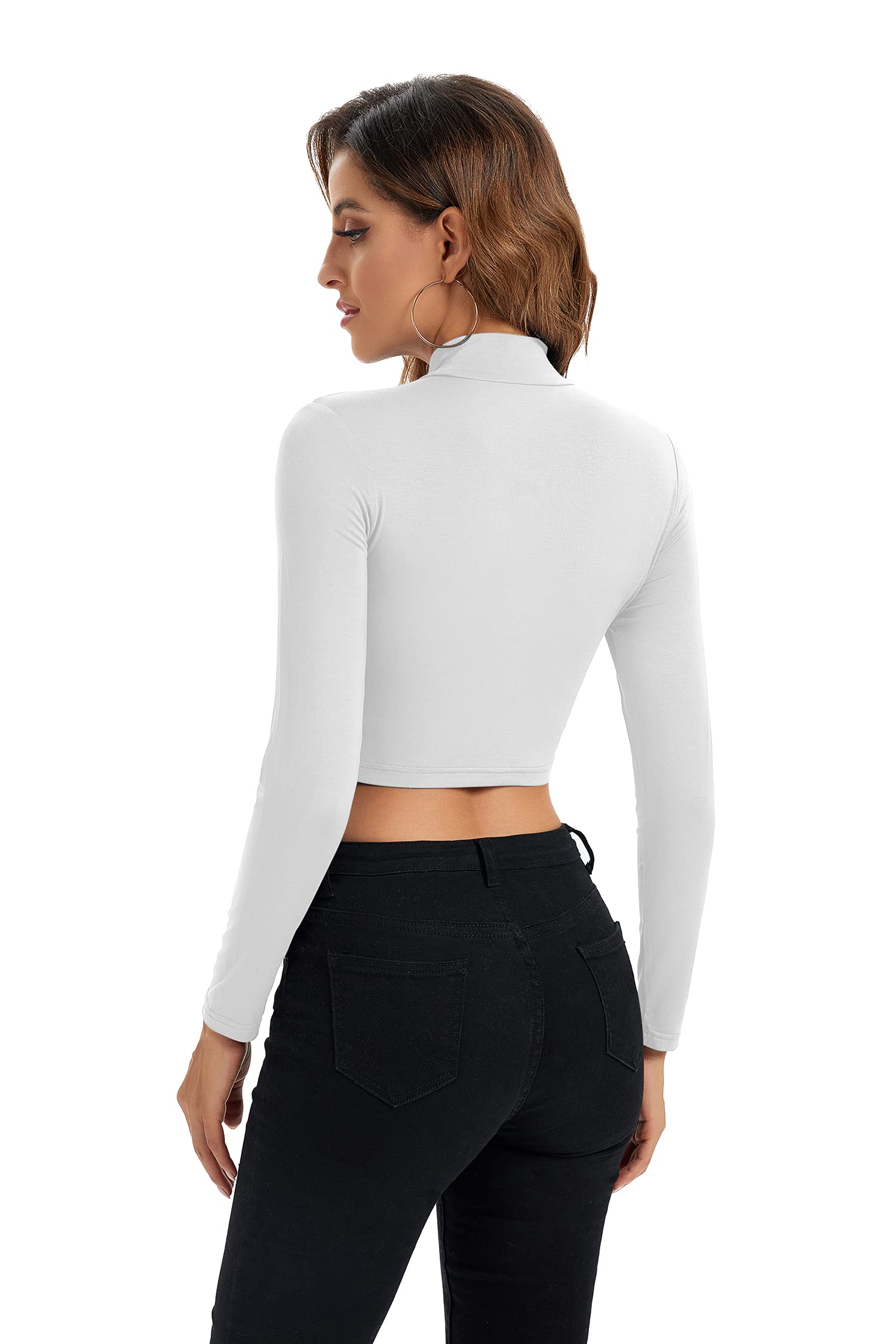 Description Long Sleeve Crop Tops for Women and Teen Girls, Suitable for Casual, Cheerleading, Undershirt. Long Sleeve Midriff Tops. Cropped Turtleneck, Mock Neck Tops. Very Soft, Lightweigt. Sleek Feeling.