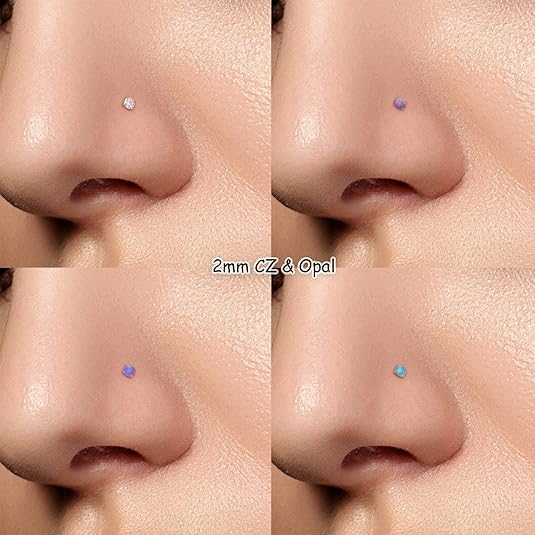 🆕Nose Rings Set: This set includes 8 nose studs featuring round CZ and opal nose studs designs, each sized at 2mm, suitable for various fashion styles. These versatile nose rings studs are perfect for both men and women