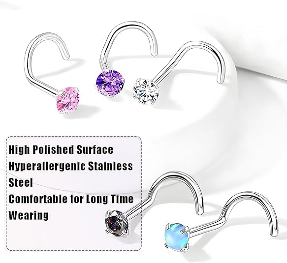 🆕Versatile Use: Suitable for a variety of applications including corkscrew nose rings, nostril piercing jewelry, and nose screws, these nose piercings are perfect for your collection. Great for daily wear or special occasions, these stylish dainty nose studs will complement any look