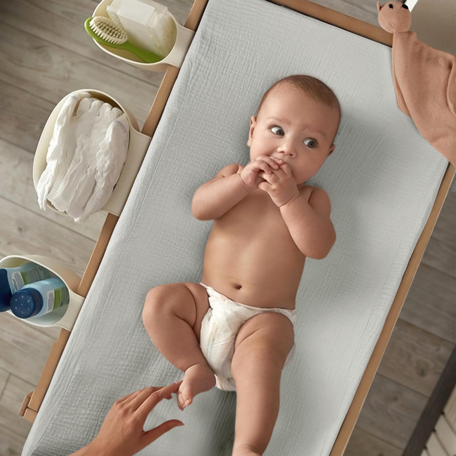 SOFT AND BREATHABLE: Our changing pad covers is made of 100% muslin cotton. The touch is soft and comfortable, which is very suitable for infant sensitive skin. Lightweight and breathable fabric will keep your baby cool and comfortable.