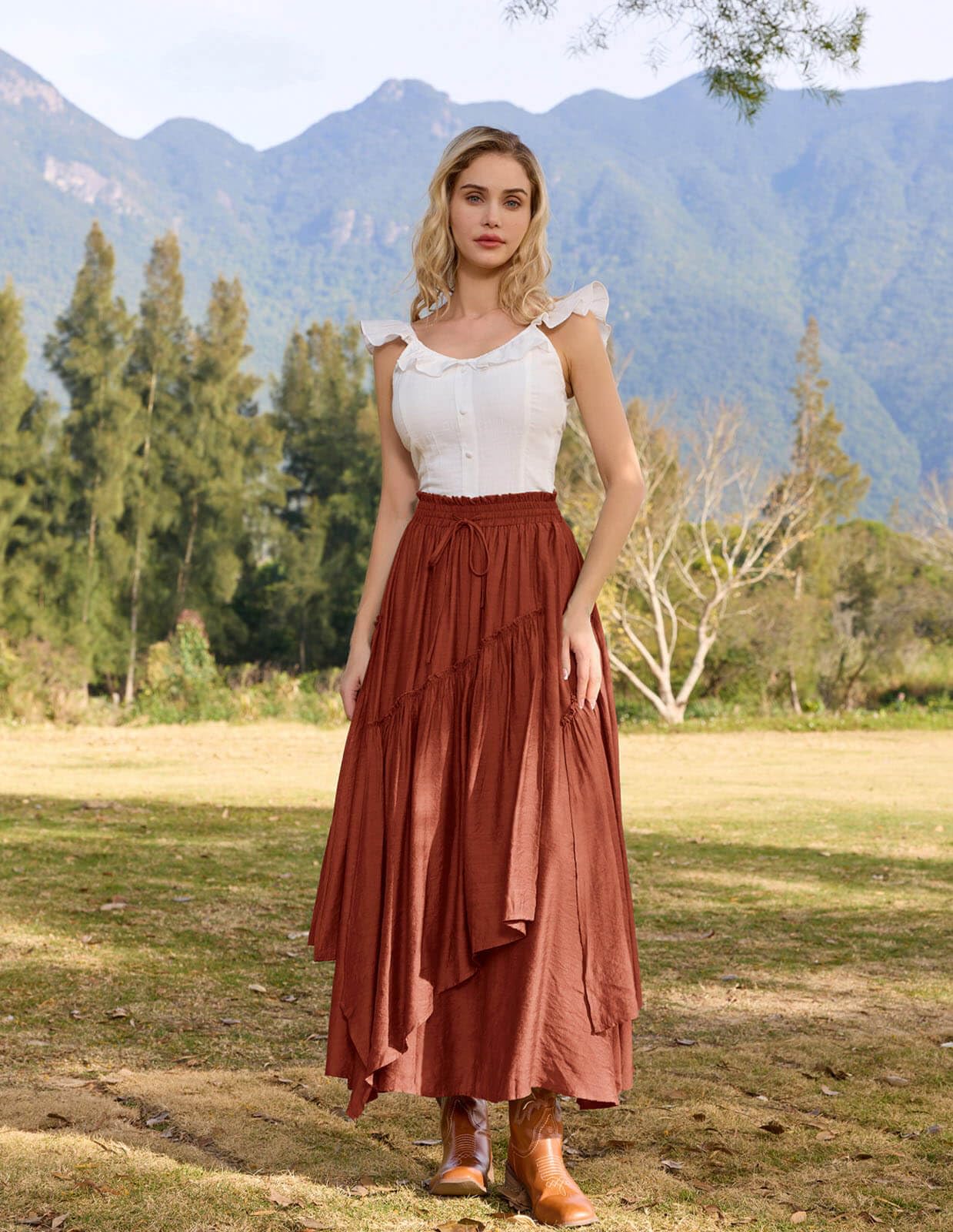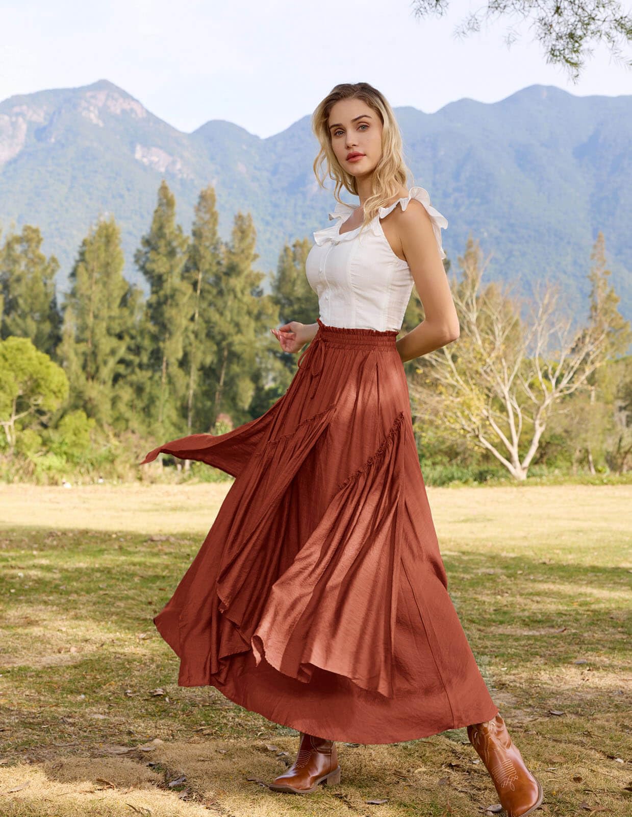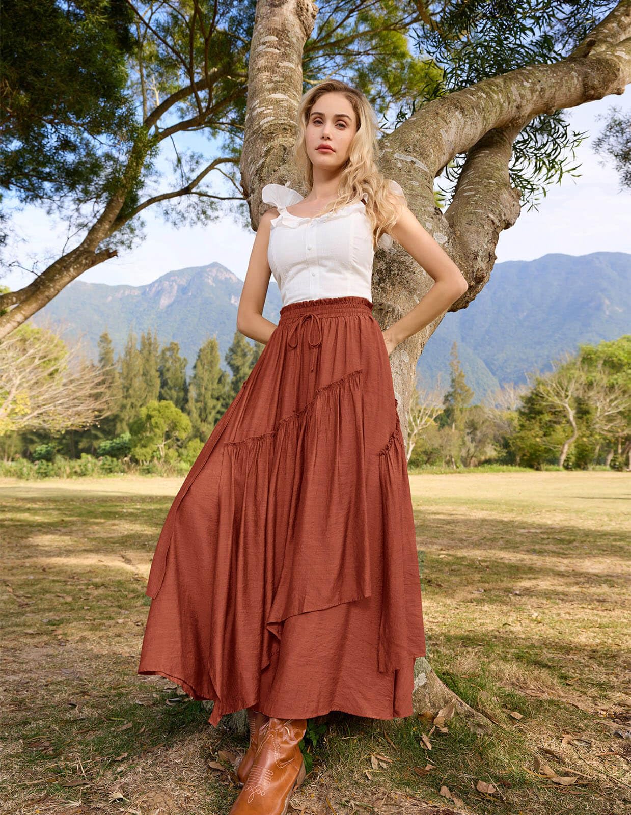 Distinctive Layered Design - The Renaissance long skirt comes in an A-line fit, with tiers through the skirt for subtle shaping, featuring slant seams with slight shirring to create a tiered silhouette