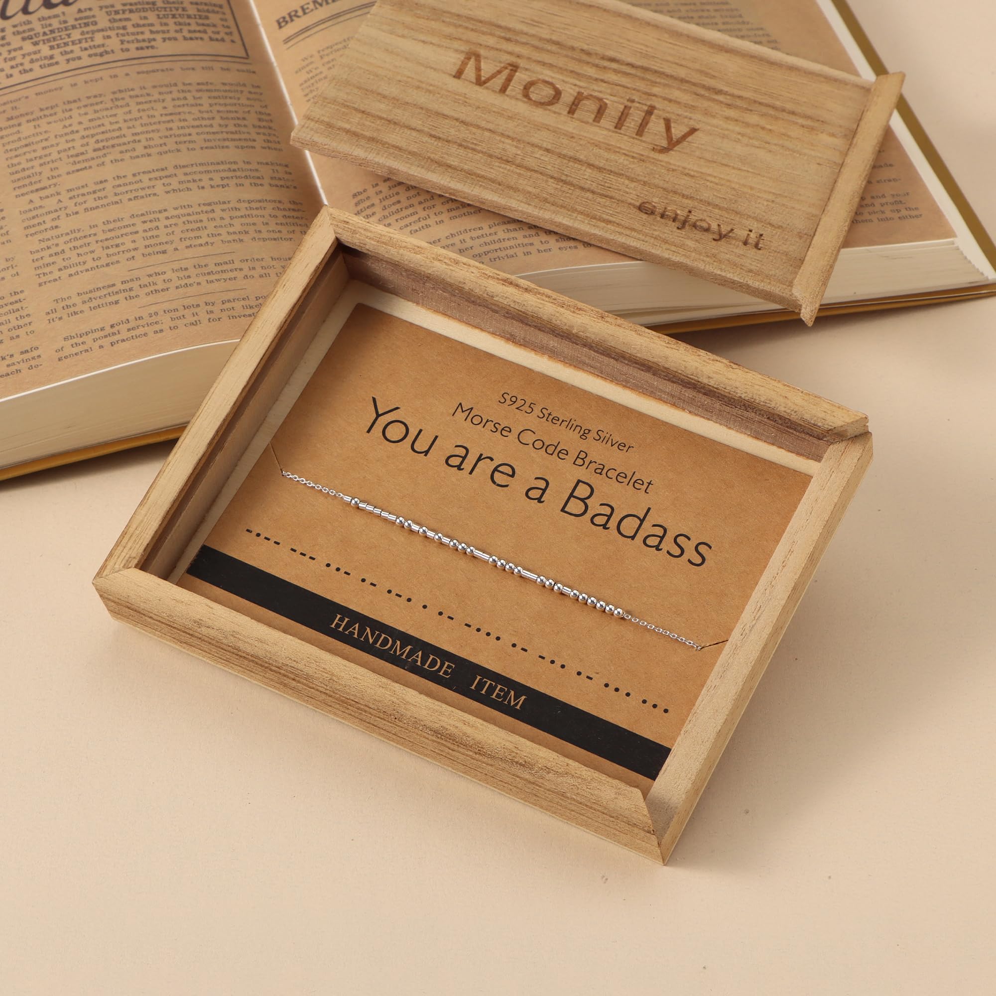 Design Ideas:Morse code born from ingenuity, represents a unique method of conveying messages through sequences of dots and dashes.Initially, Morse code served as the information bridge between telegraph operators,Currently a good way to deliver hidden messages. The bracelet for this listing is "You are a Badass"