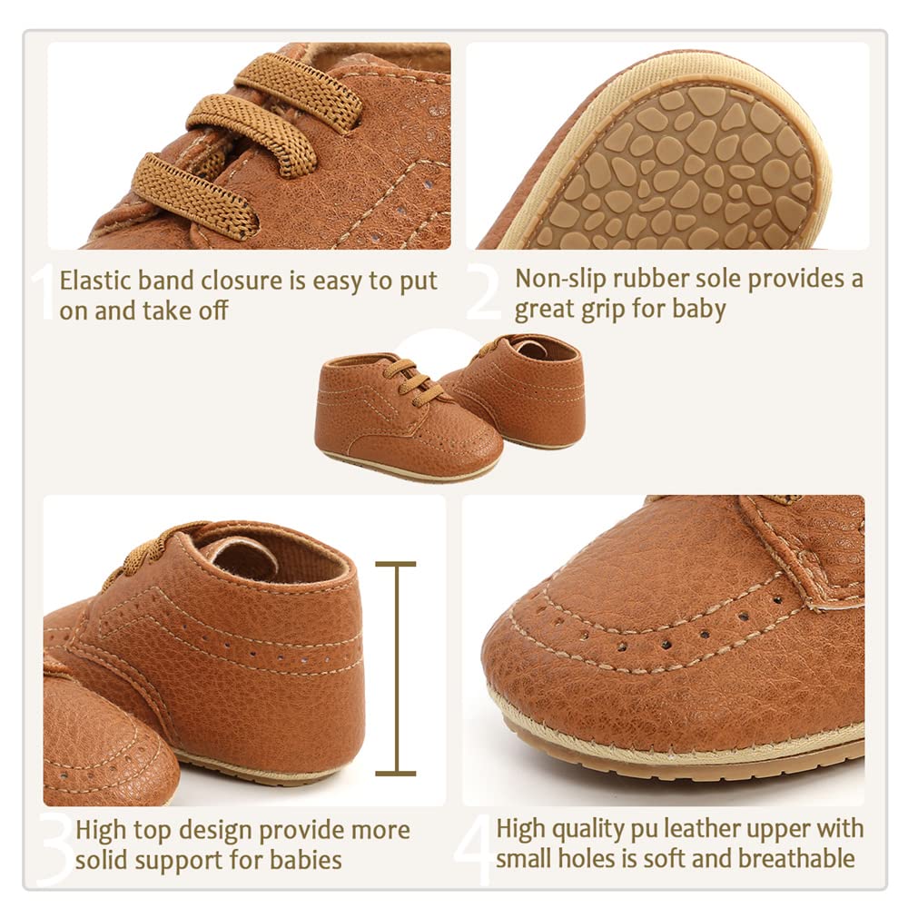 【CLASSIC&SIMPLE DESIGN】Oxford Featuring Lace-Up , Brogue Oxford Dress Shoes Suit For Both Casual And Formal Wear, Great Daily Uniform Wedding Shoes For Boys And Girls.Great For Crawling,Walking,Playing.Whether It's a Holiday, Birthday Or Wedding, The Baby Shoe's Brogue Details Will Look Darling On Your Infant's Feet.