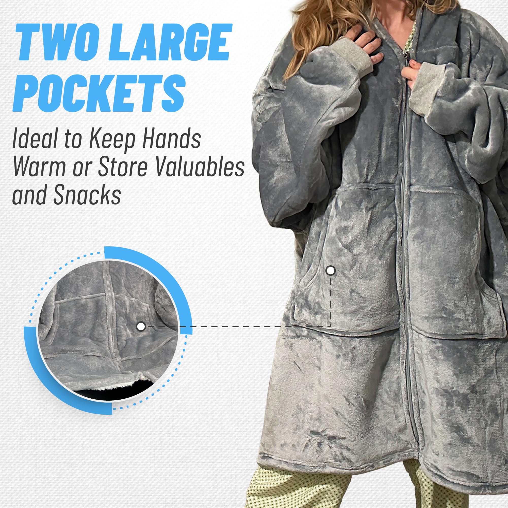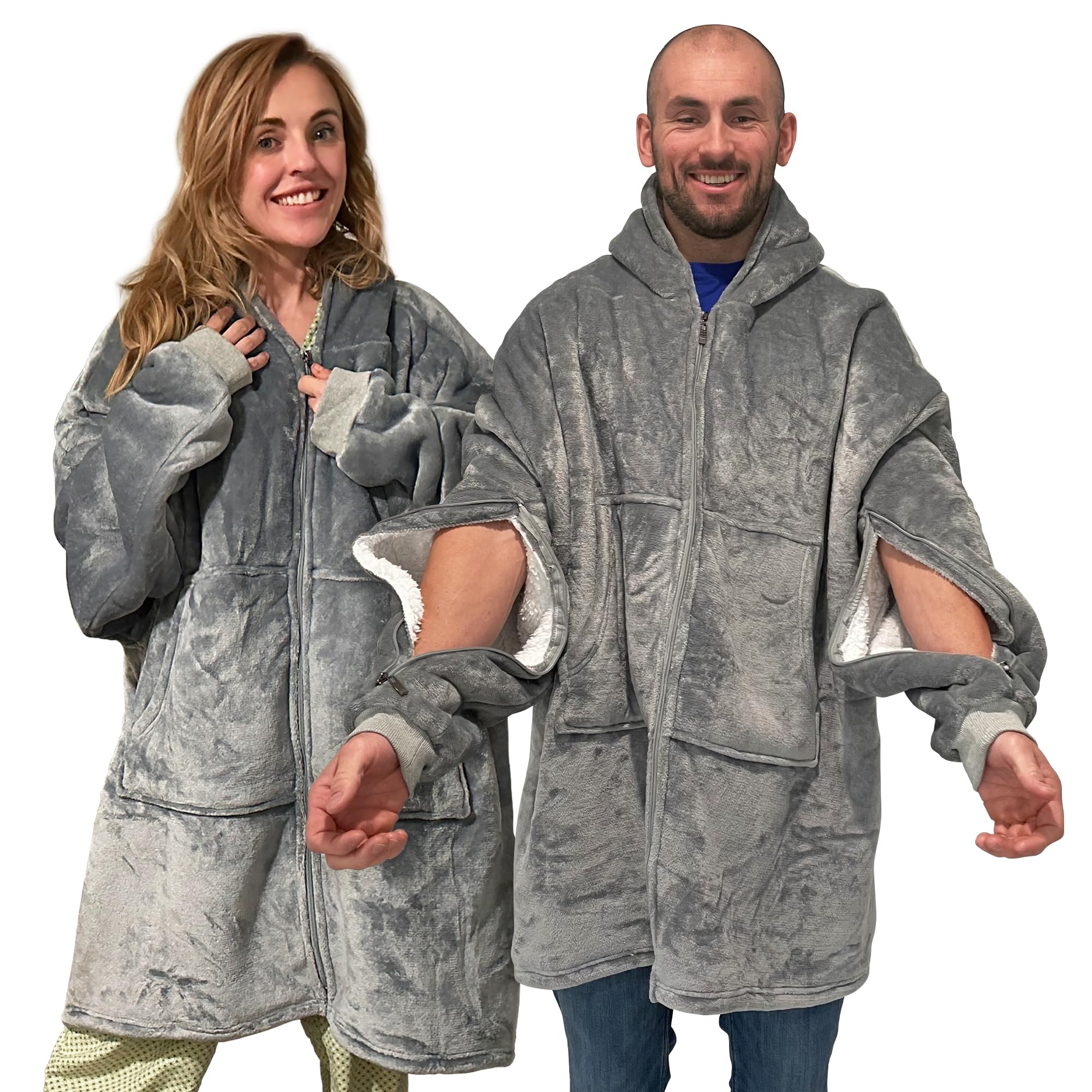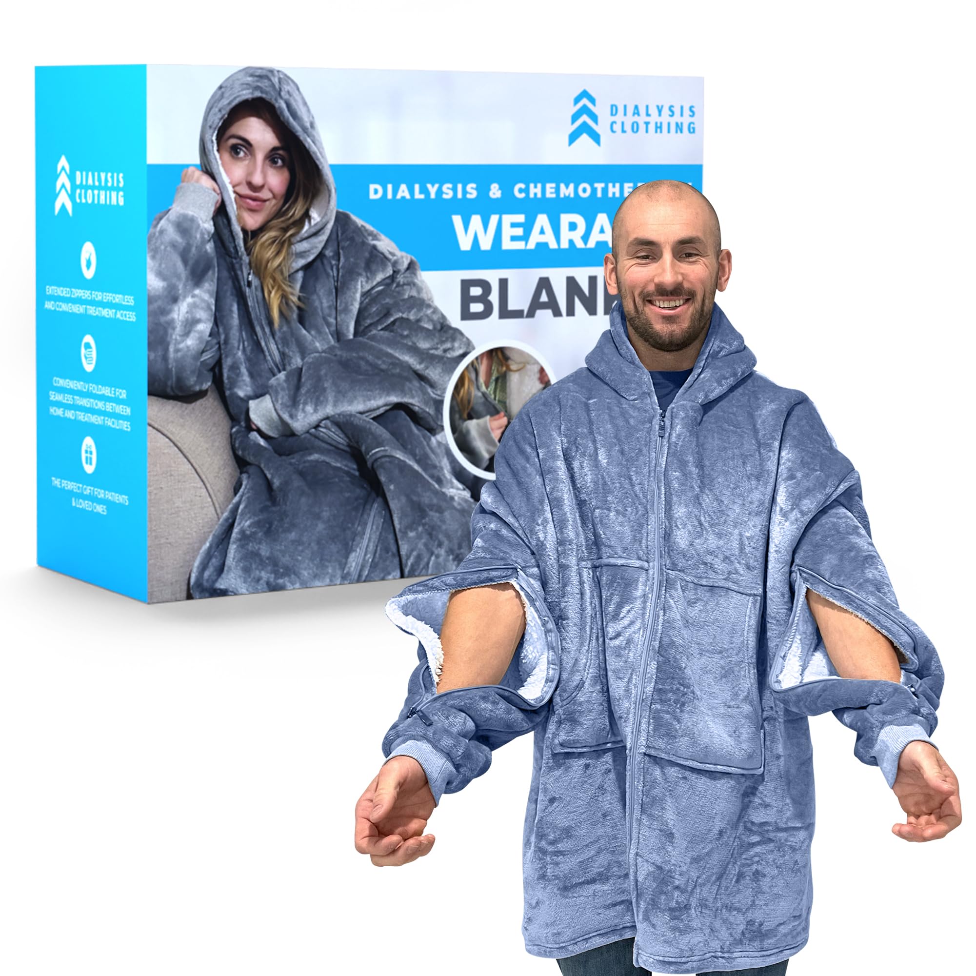 Oversized Arm Zipper Openings for Flexible Access to a Fistula or PICC Line on Either Arm.
