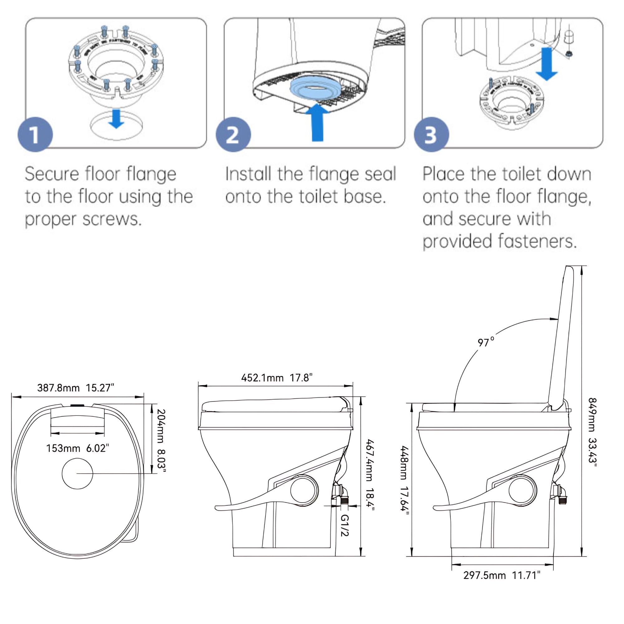 [ HASSLE-FREE RV PLUMBING INSTALLATION ]: Designed for direct replacement compatibility with existing RV waste systems; floor flange sold separately and available in bundle or individually.