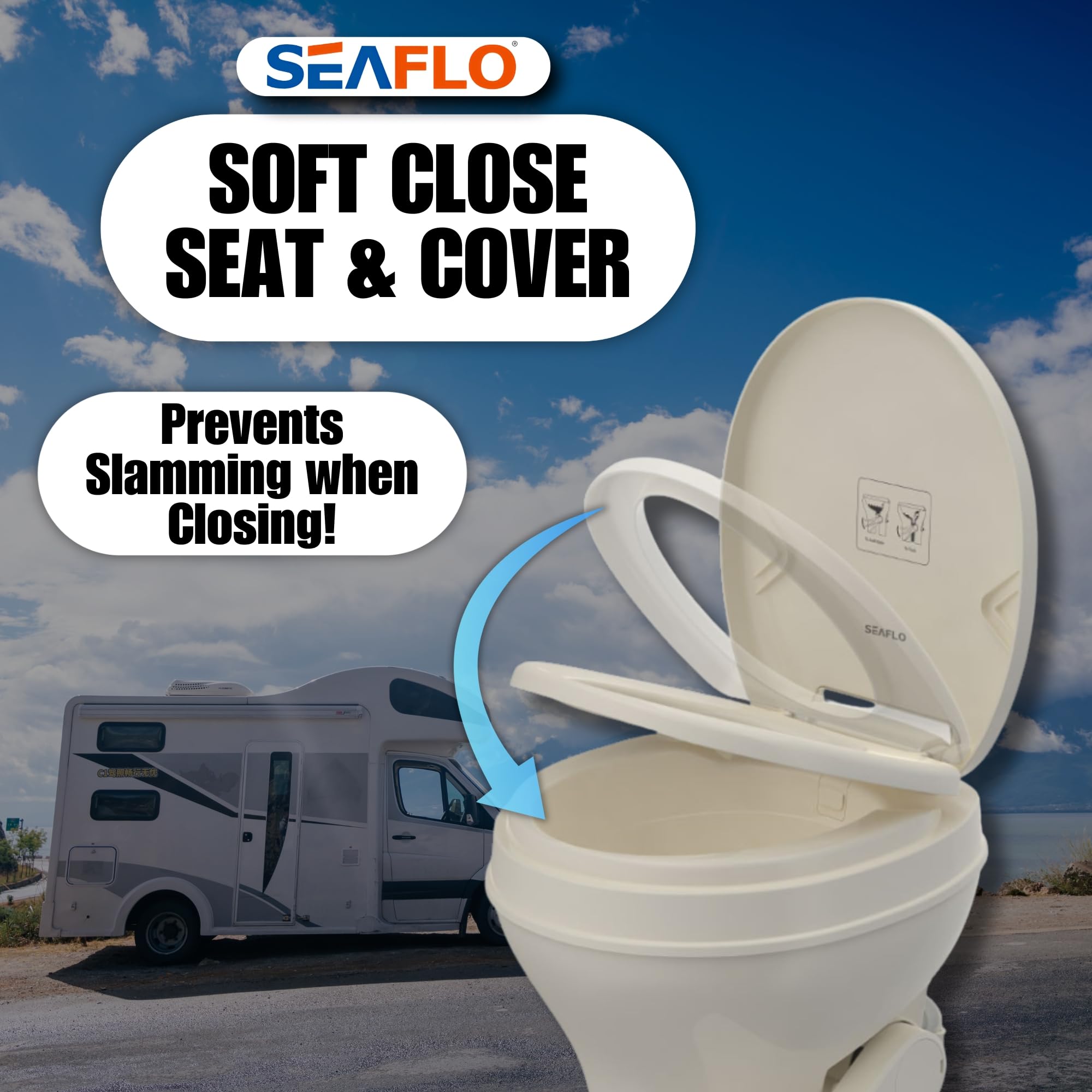 [ QUIET SOFT-CLOSE SEAT AND COVER ]: Slow-close hinge prevents slamming noises and protects components from damage during travel, maintaining a calm RV environment at night.