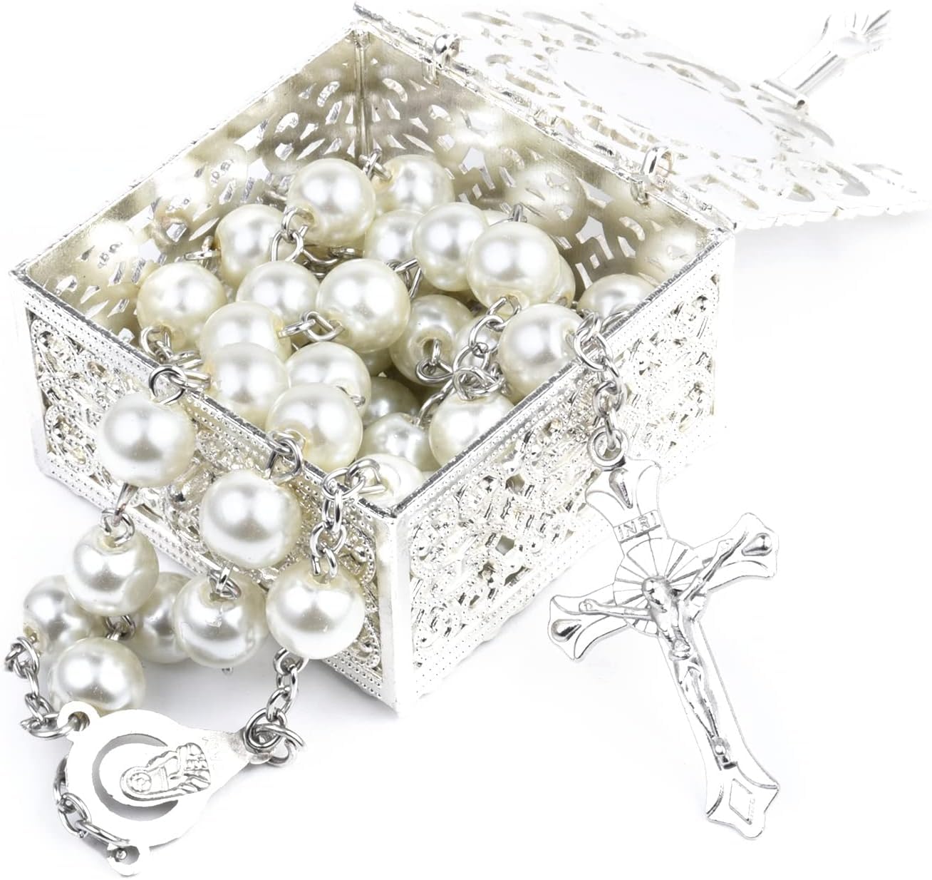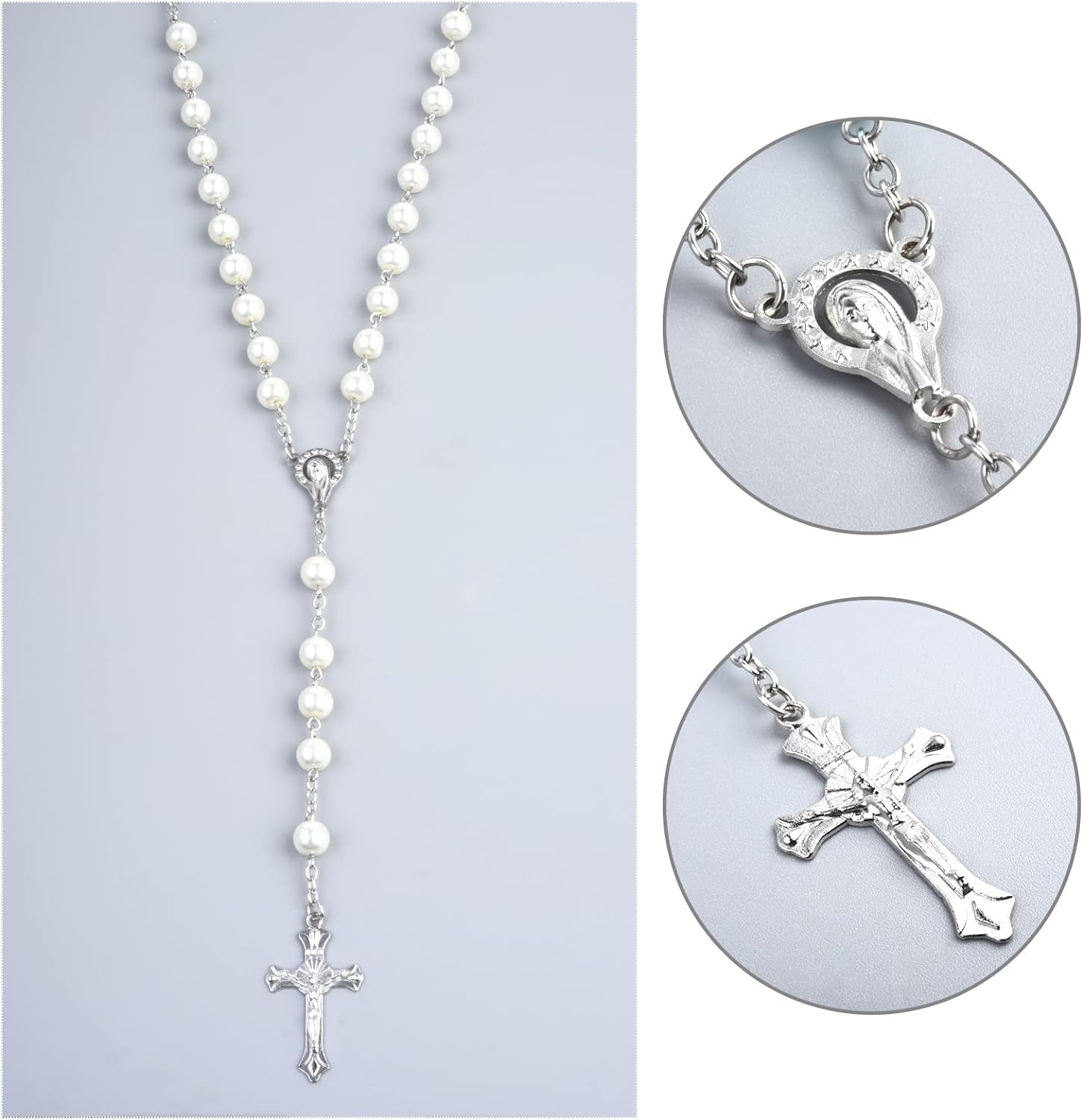 【Beautiful and Durable】: Our blessed catholic rosary are made of pearls, the rest parts are made of high-quality zinc alloy. High quality material make the vintage rosary beads catholic sturdy and durable enough to last a long time.