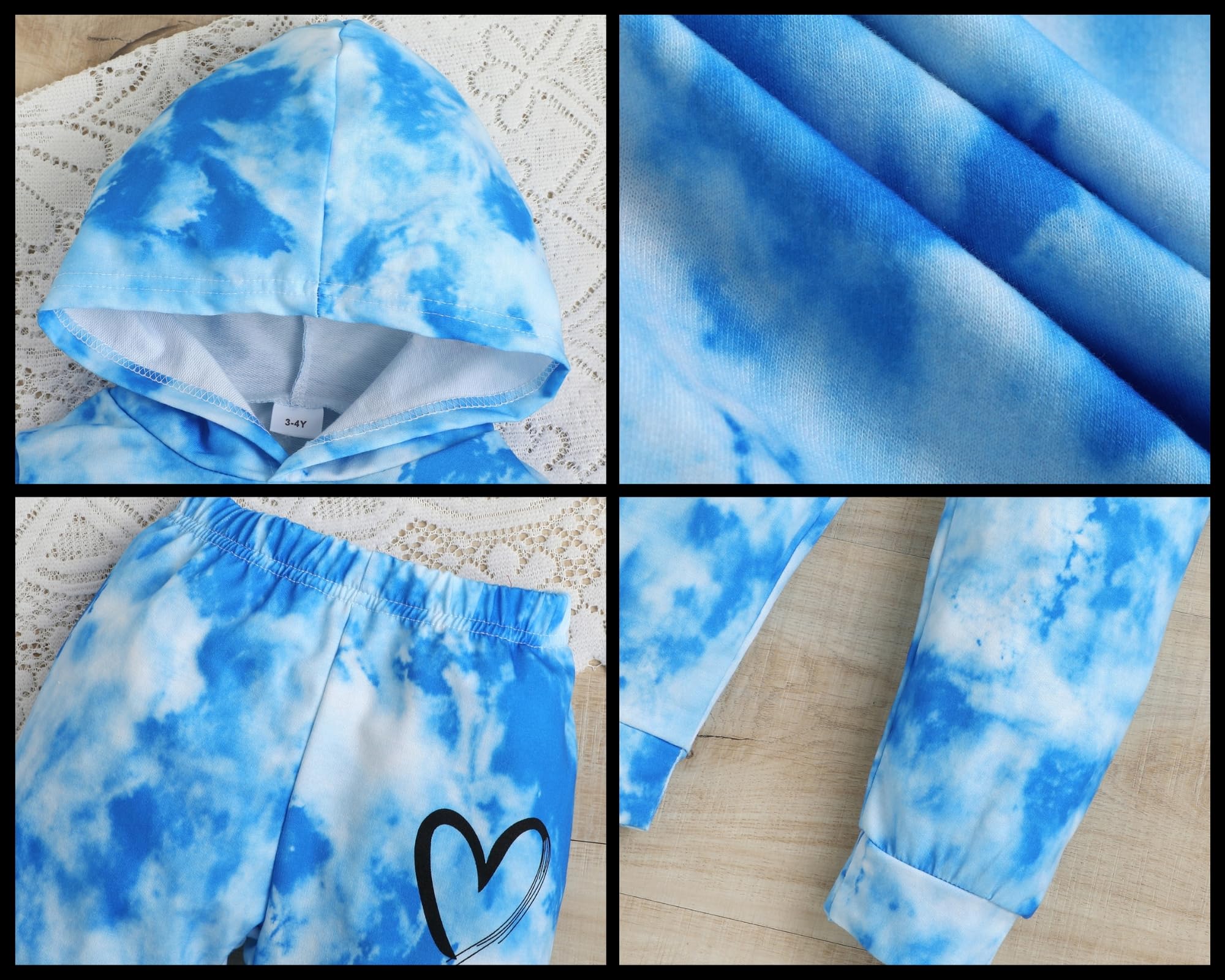 💖 Fashion Design : 2-6T Toddler Baby girl fall outfits, tie dye hoodie long sleeve sweatshirt and pants, unique heart graphic make your little girls look adorable and fashion, will be get lots of compliments.