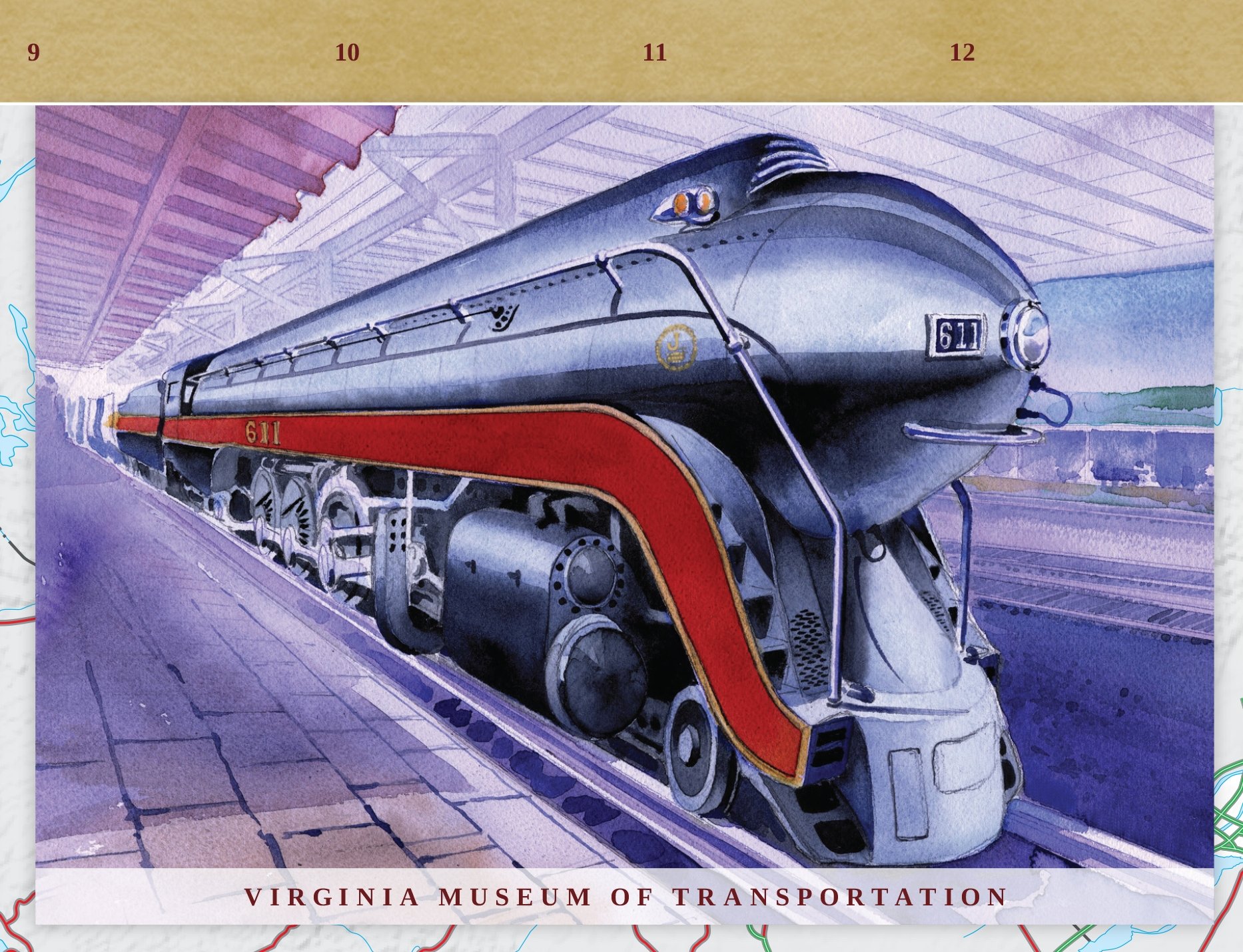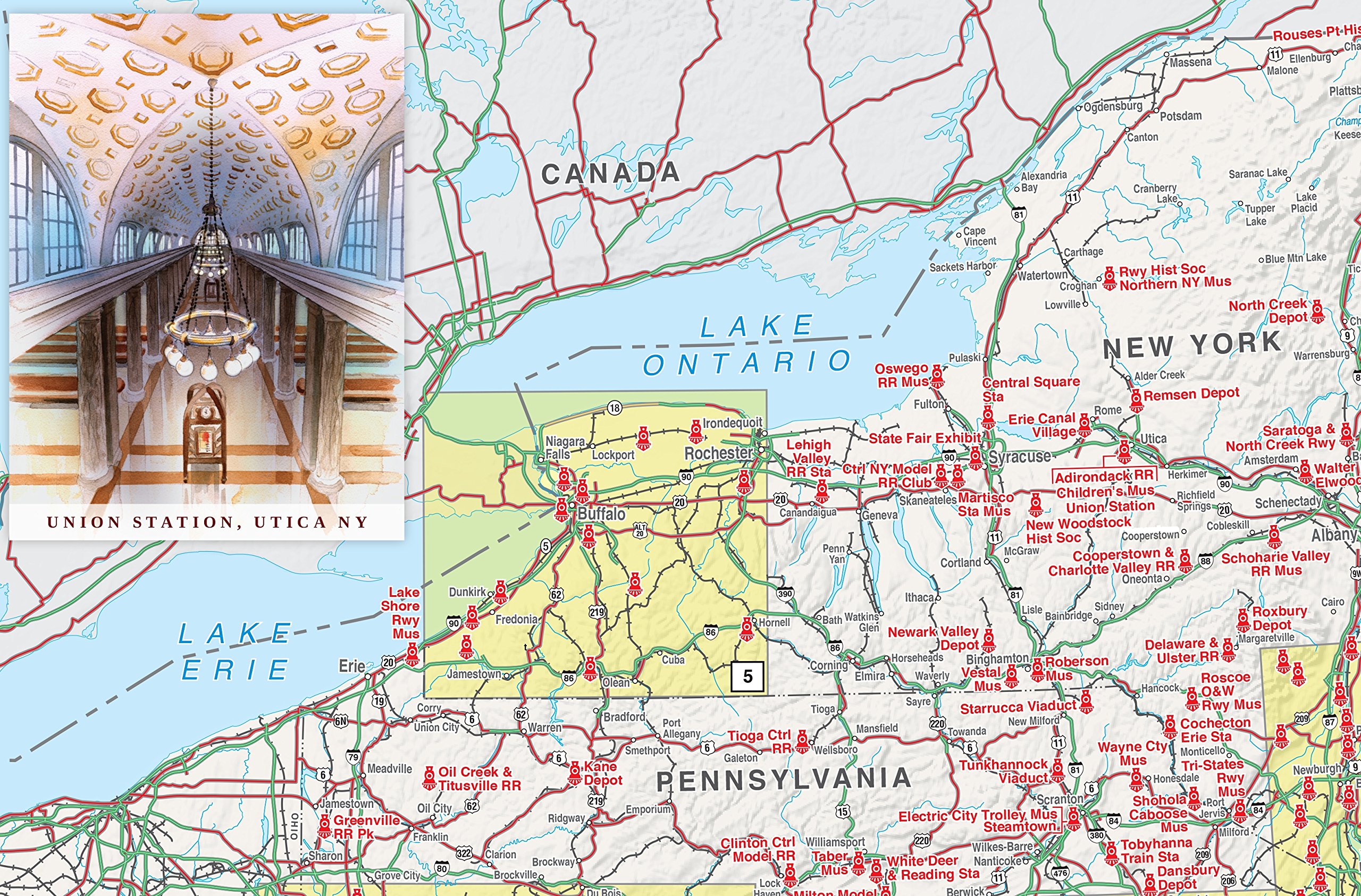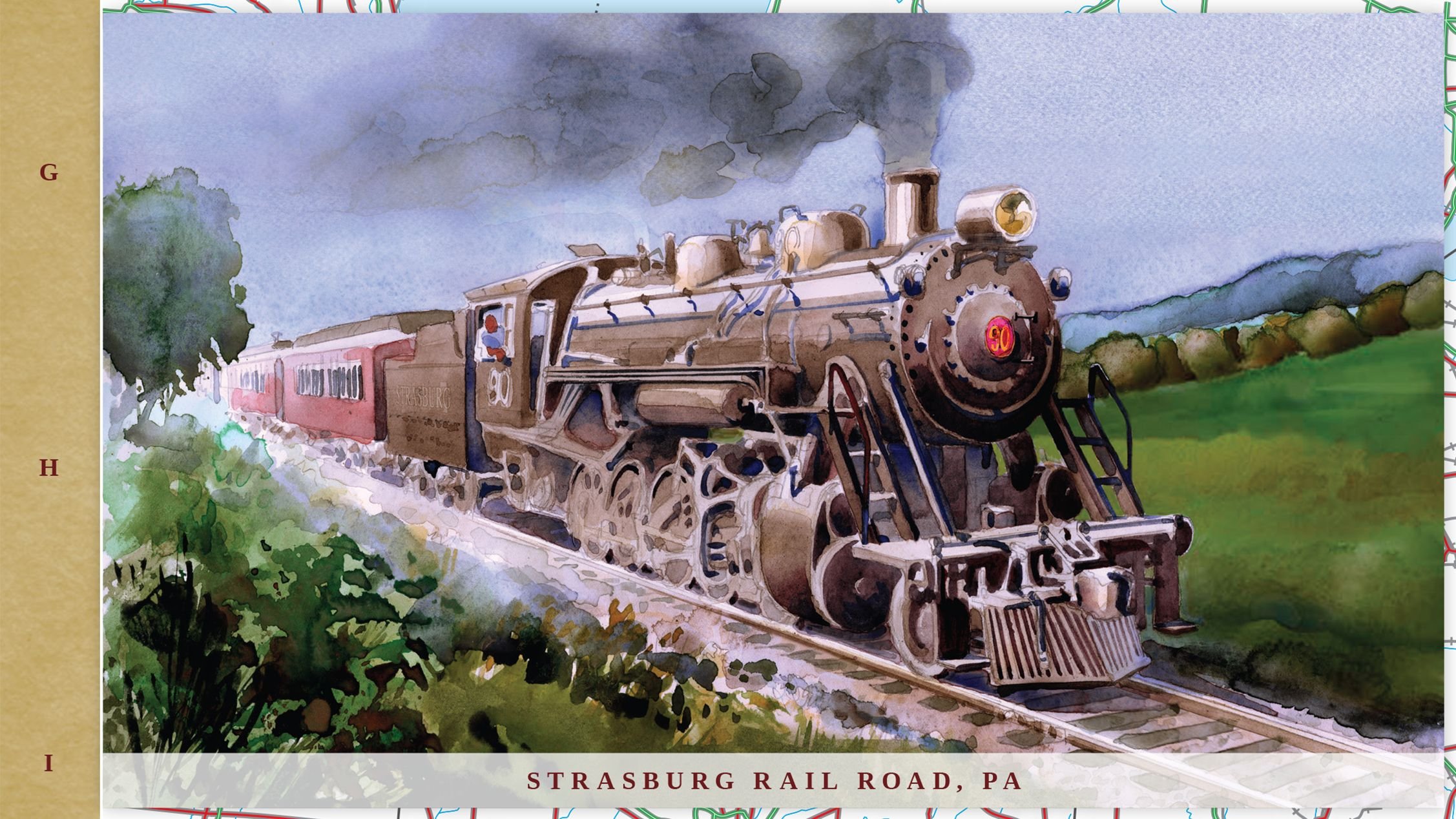 The Ultimate Guide for Railroad Enthusiasts! Information on more 413 rail attractions from Maine to Florida -- the most comprehensive and up-to-date listing anywhere. Includes Railroad Museums & Exhibits, Historic Depots, Scenic Railroads, Dinner Trains, Trolley Rides & Museums, Miniature Railroads, Model Layouts & Antique Toy Trains, Railroad Historic Sites, and Train Viewing Platforms & Locations These railroad points of interest are shown on a detailed map for easy travel planning. Sixteen beautiful original watercolor illustrations of trains, stations and roundhouses. 27" x 39", folded to 6" x 9 3/4", printed two sides. Includes: Connecticut, Delaware, DC, Florida, Georgia, Maine, Maryland, Massachusetts, New Hampshire, New Jersey, New York, North Carolina, Pennsylvania, Rhode Islands, South Carolina, Vermont, Virginia, West Virginia. Also available: Central States, Western States and National Edition with all 3 Regional Maps together.