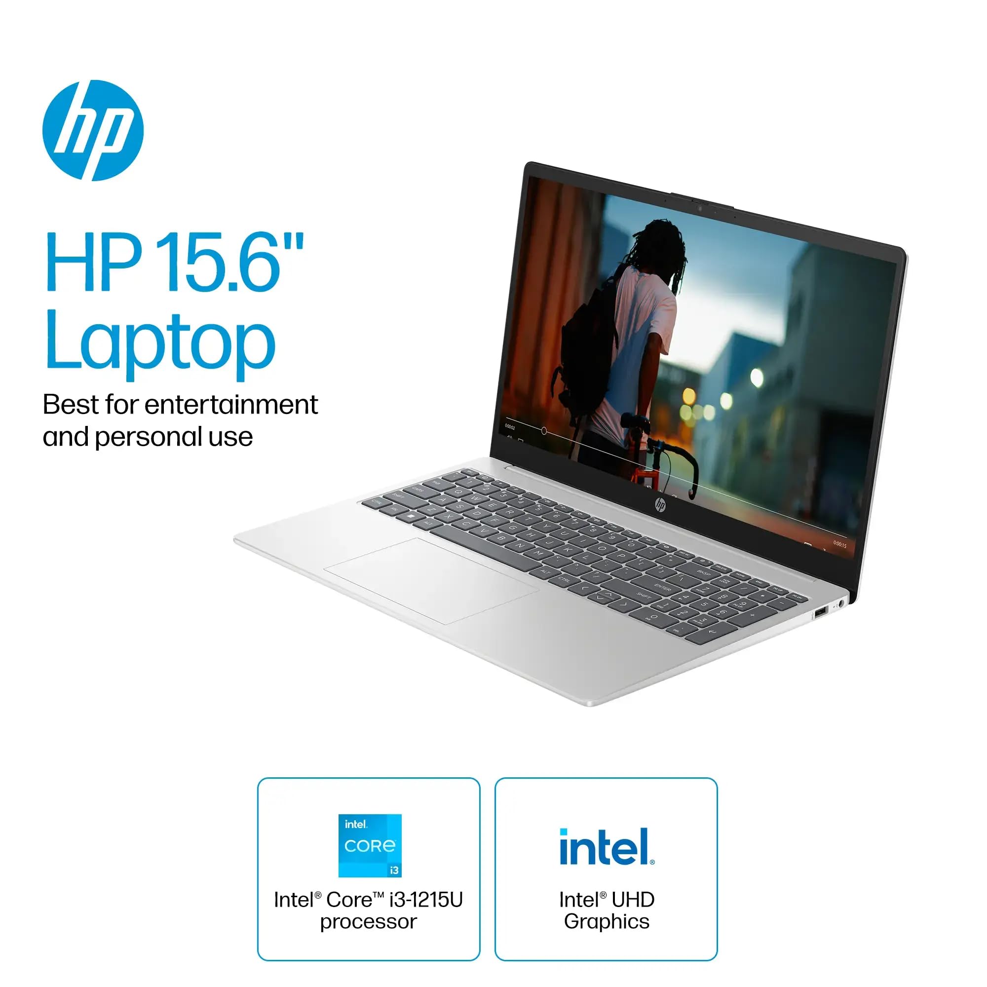 Windows 11 Home Experience the most secure Windows ever built with fast boot times, increased responsiveness, and added protection against phishing and malware. Micro-edge displaye With virtually no bezel encircling the display, an ultra-wide viewing experience provides for seamless multi-monitor set-ups. A dynamic processor that adapts to you for superior multi-tasking performance 12th Gen Intel Core processor distributes performance where you need it the most — saving you time and increasing your ability to do the things you actually want. Intel UHD Graphics Smoothly stream 4K content and play your favorite games. PCIe NVMe SSD storage Get up to 15x faster performance than a traditional hard drive. HP Fast Charge Go from 0 to 50% charge in approximately 45 minutes. Screen to body ratio Revolutionize your display and see more of what you love with this slim bezel design. Enjoy an immersive multimedia experience with a maximized viewing area. Sleek design Easily take this thin and light PC from room to room or on the road. Wi-Fi 5 (1x1) and Bluetooth 4.2 wireless card Stay connected to Wi-Fi and to Bluetooth accessories with wireless technology. Dual array microphones With two microphones and advanced noise reduction technology, you'll always sound crystal clear when you video chat or record. HP True Vision HD Camera Video chat with vibrant clarity, even in low light. Made with the planet in mind The HP 15.6-inch Laptop is EPEAT Silver registered and ENERGY STAR certified. And it contains sustainable, post-consumer recycled plastics.