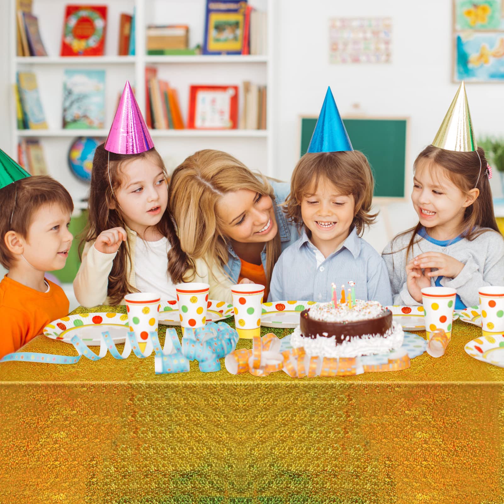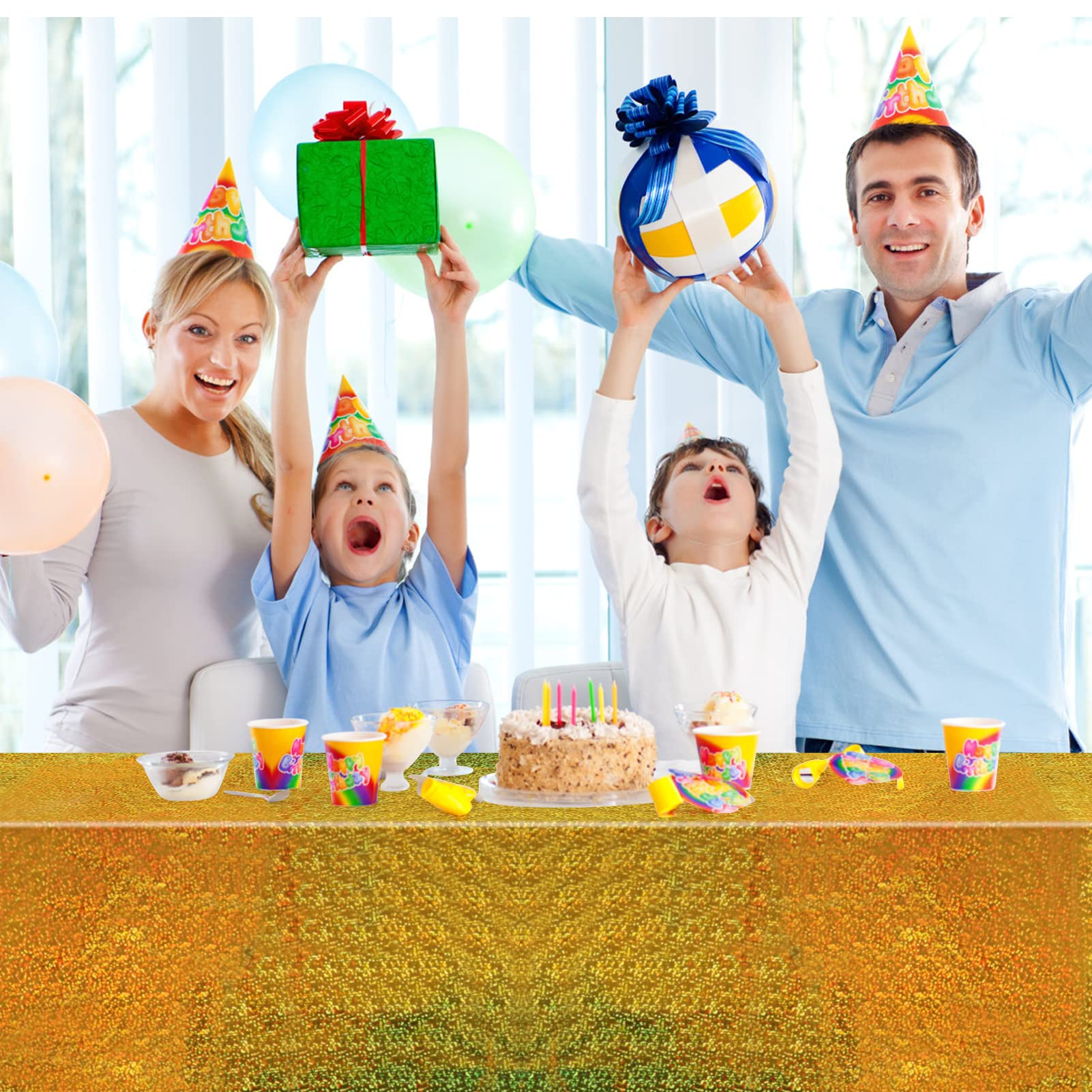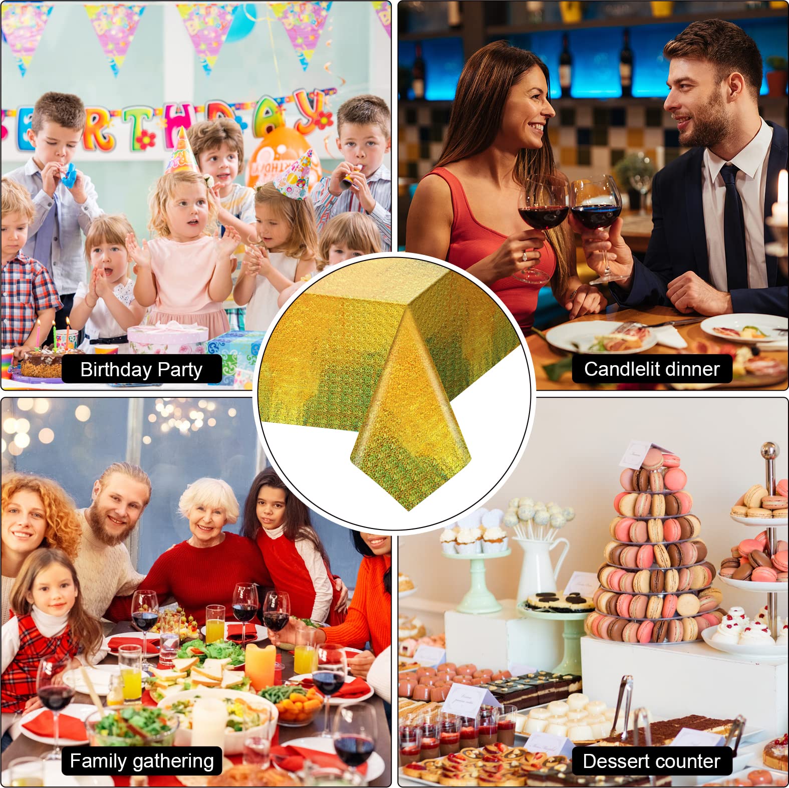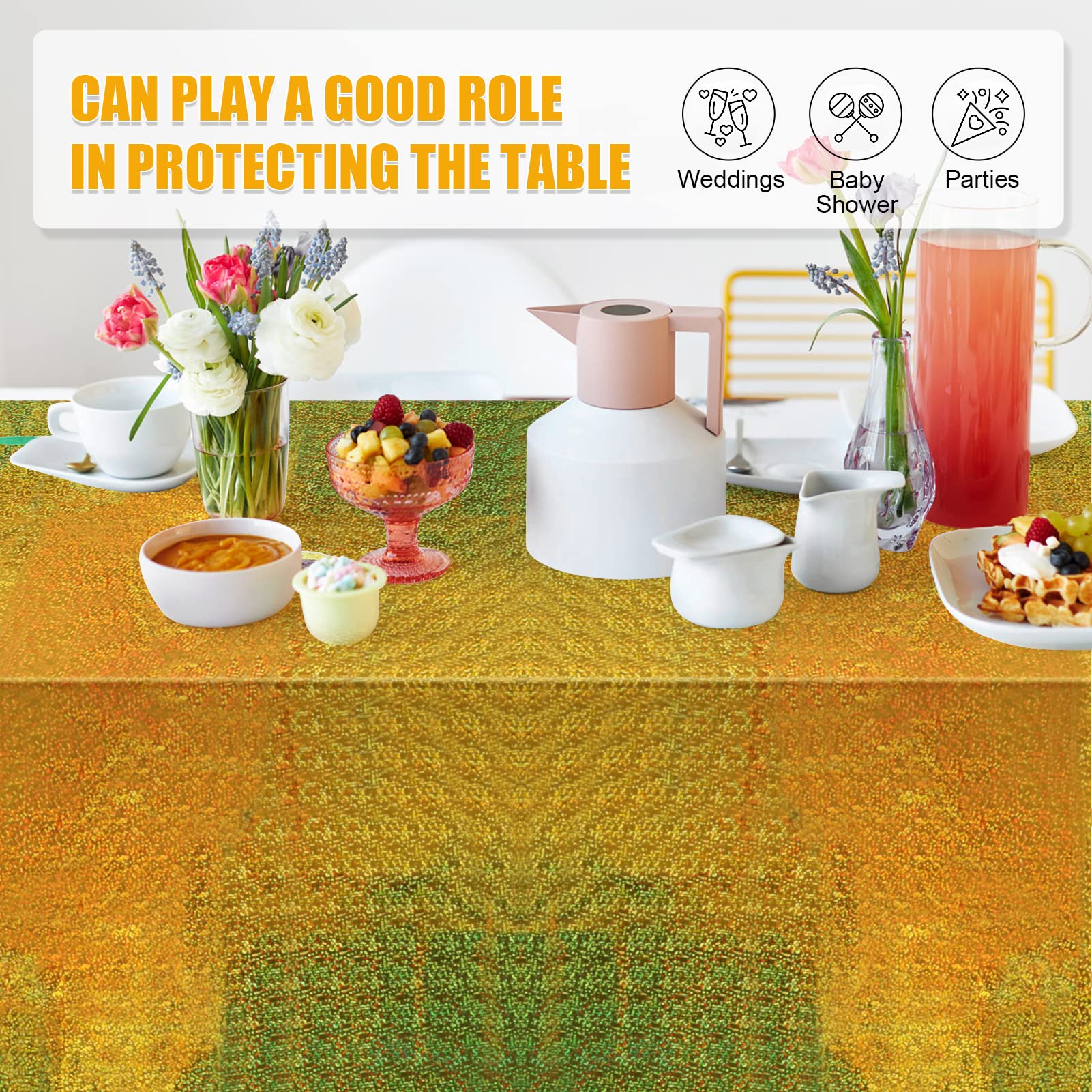 Iridescent Tablecloths for Rectangle Tables: The Iridescence plastic table cloth is suitable for birthday decorations, pink party decorations, party decorations, birthday party decorations, princess party decorations. These tablecloths also perfect for engagement party decorations, first communion decorations, table cloths for parties, birthday decorations, table decorations for party and other different party themes