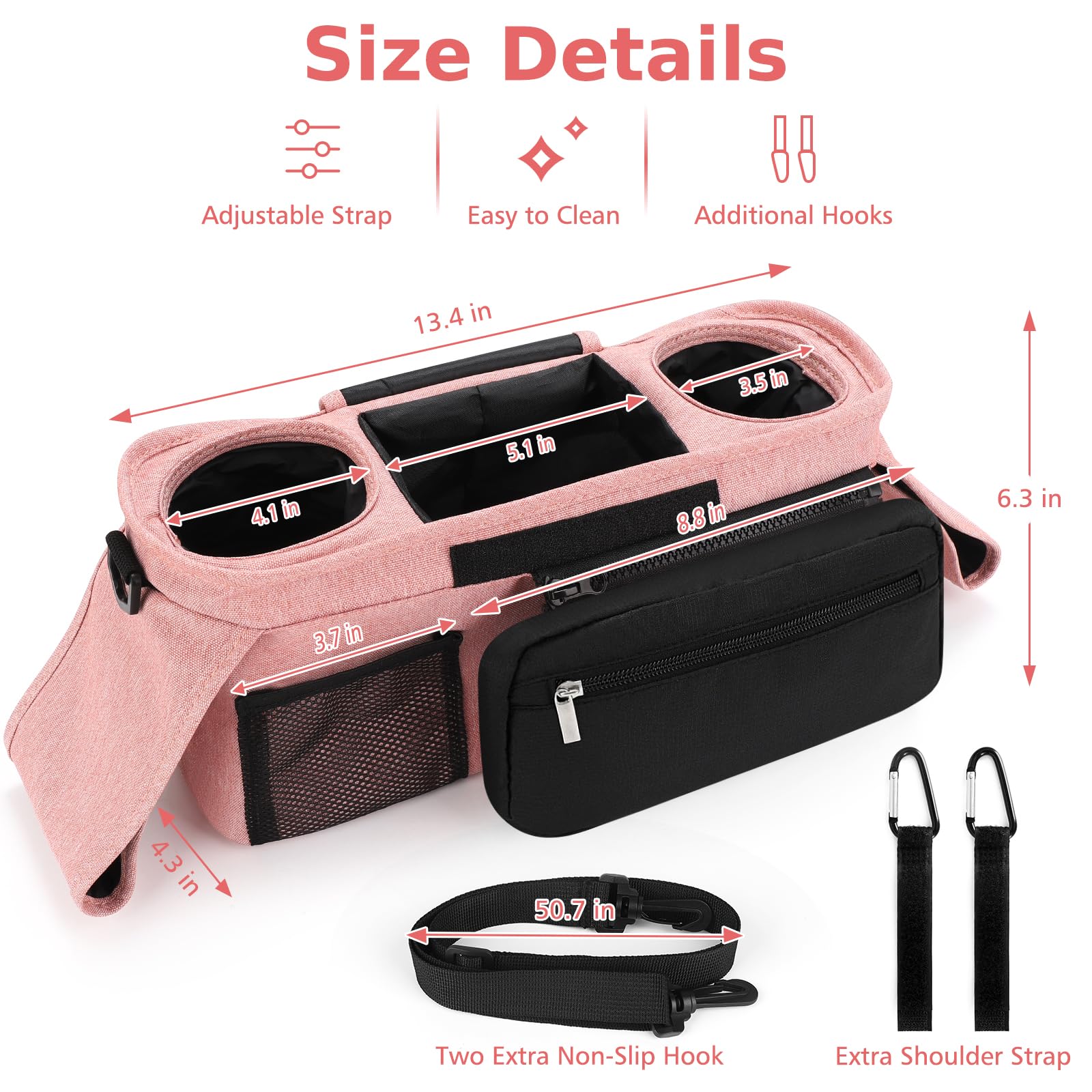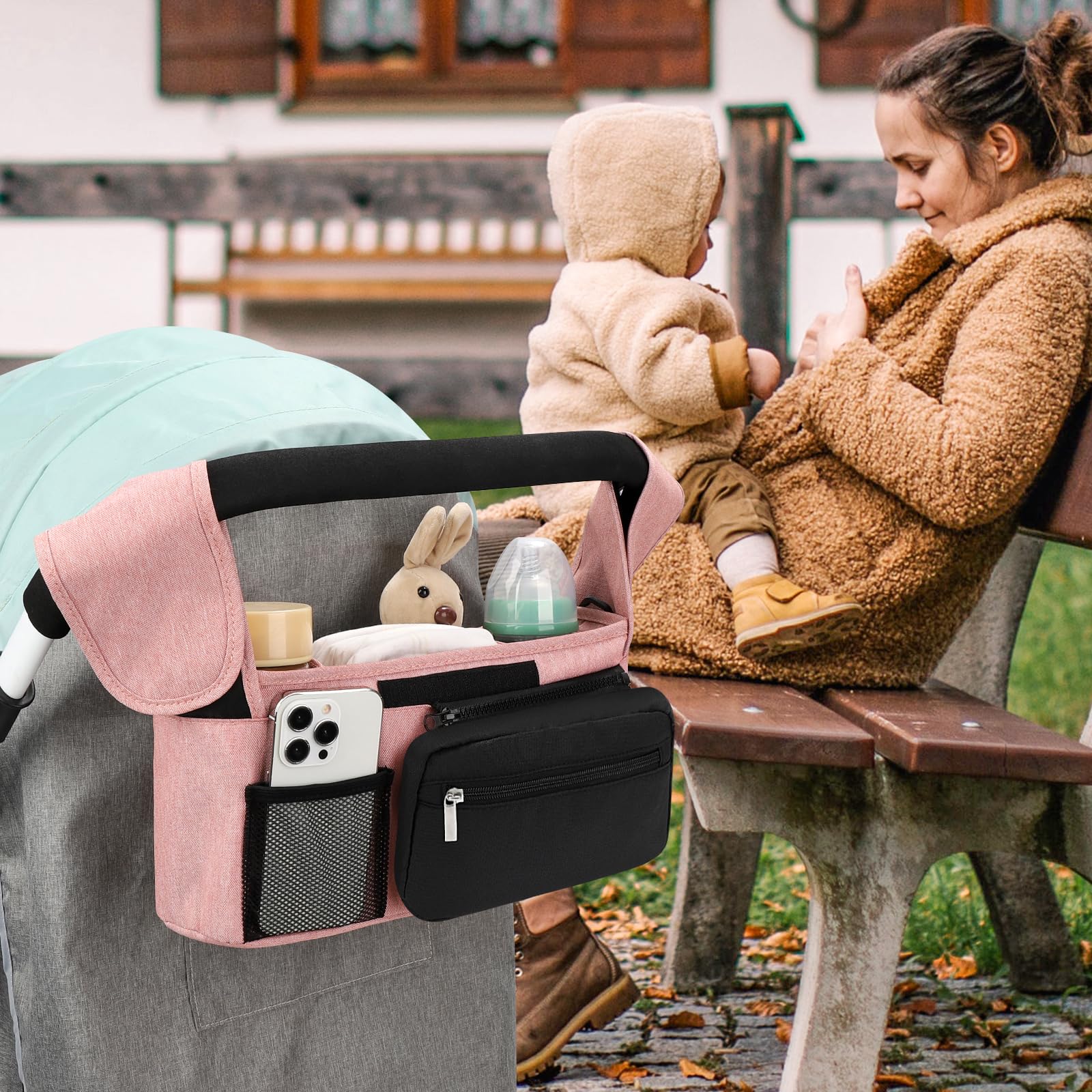 Multiple Usage Methods : It can be hung as a stroller cup holder organizer on the stroller. When you don't need to use a stroller, you can also install the accompanying strap and carry this organizer bag for easy outing.