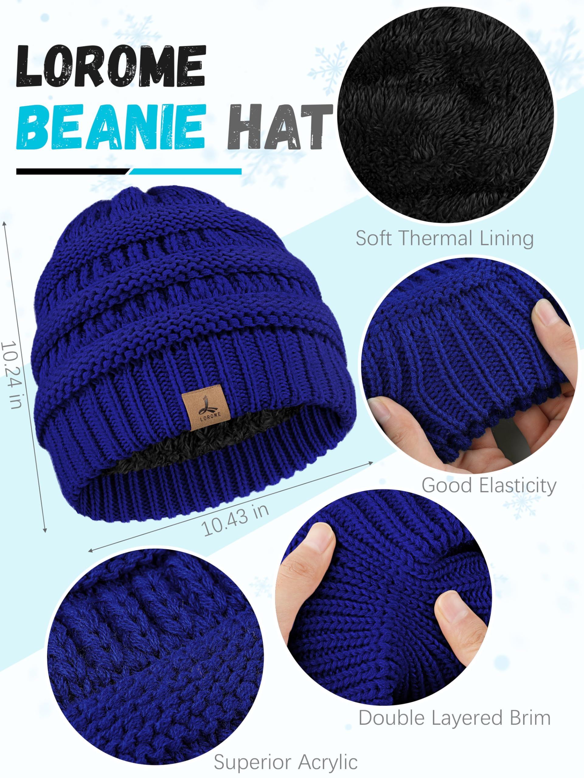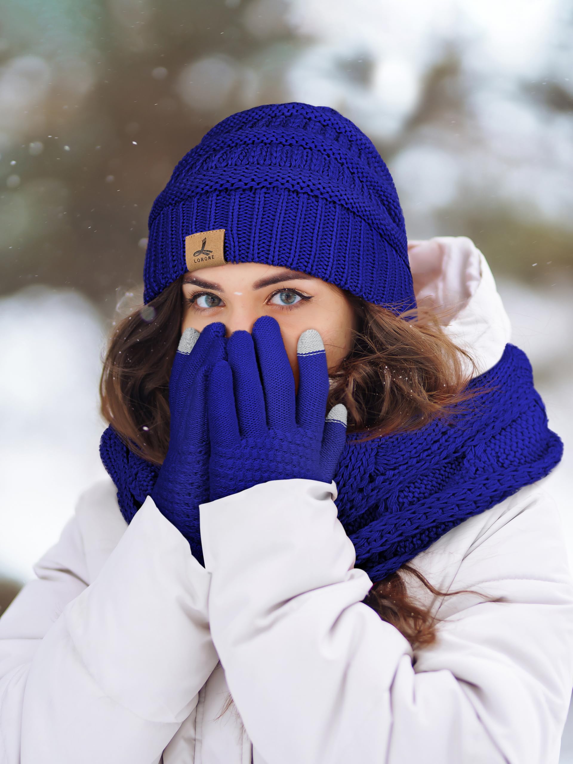 Package Contents - This set includes a luxurious 3-piece winter ensemble in Royal Blue, featuring a beanie, a scarf, and a pair of gloves with thick cuffs, designed to enrich your winter attire with a regal touch.