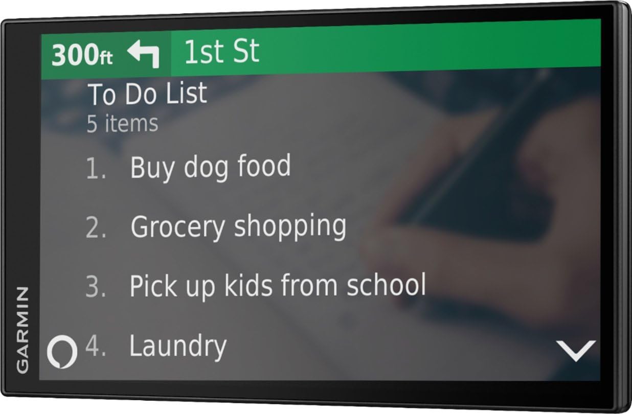 With our Premium navigator, Garmin Drive Smart 65 with Alexa, you can enjoy the ultimate voice controlled, hands free experience (require smartphone enabled with Bluetooth technology; drivers should always focus on safe driving). Ask Alexa to play music or check the news, weather or your shopping list (the Garmin Drive app must be open and running on the user’s smartphone), and ask the Garmin voice control for directions, POIs along the route and more while keeping your hands on the wheel and eyes on the road. While listening to music, the album artwork appears on the crisp 6. 95” edge to edge display. Pair with a compatible smartphone for hands free calling, smart notifications (must download the Garmin Drive app to your compatible smartphone enabled with Bluetooth technology and GPS) and real time features such as live traffic/weather/parking (for coverage details, visit ). This navigator is road trip ready with preloaded and current TripAdvisor and foursquare points of interest, The history network of notable sites and a directory of blue s. National Parks. It also features easy to use Garmin Traffic With included cable and built in Wi Fi connectivity for easy updates.