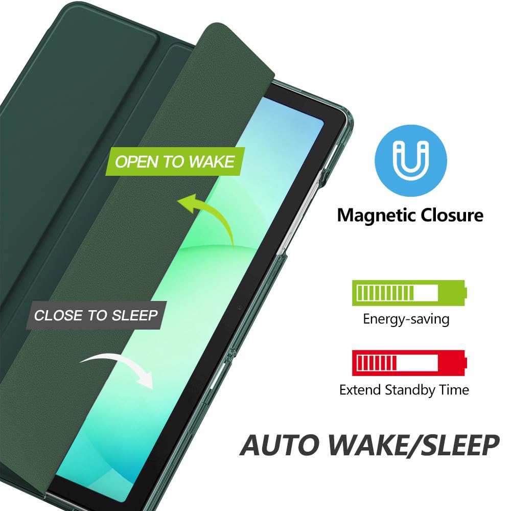 Auto Wake/Sleep: Built-in magnetic strip, automatically wakes or puts your tablet to sleep when the lid is opened and closed. This Galaxy Tab A11+/A9+ Case Protects and extends battery life