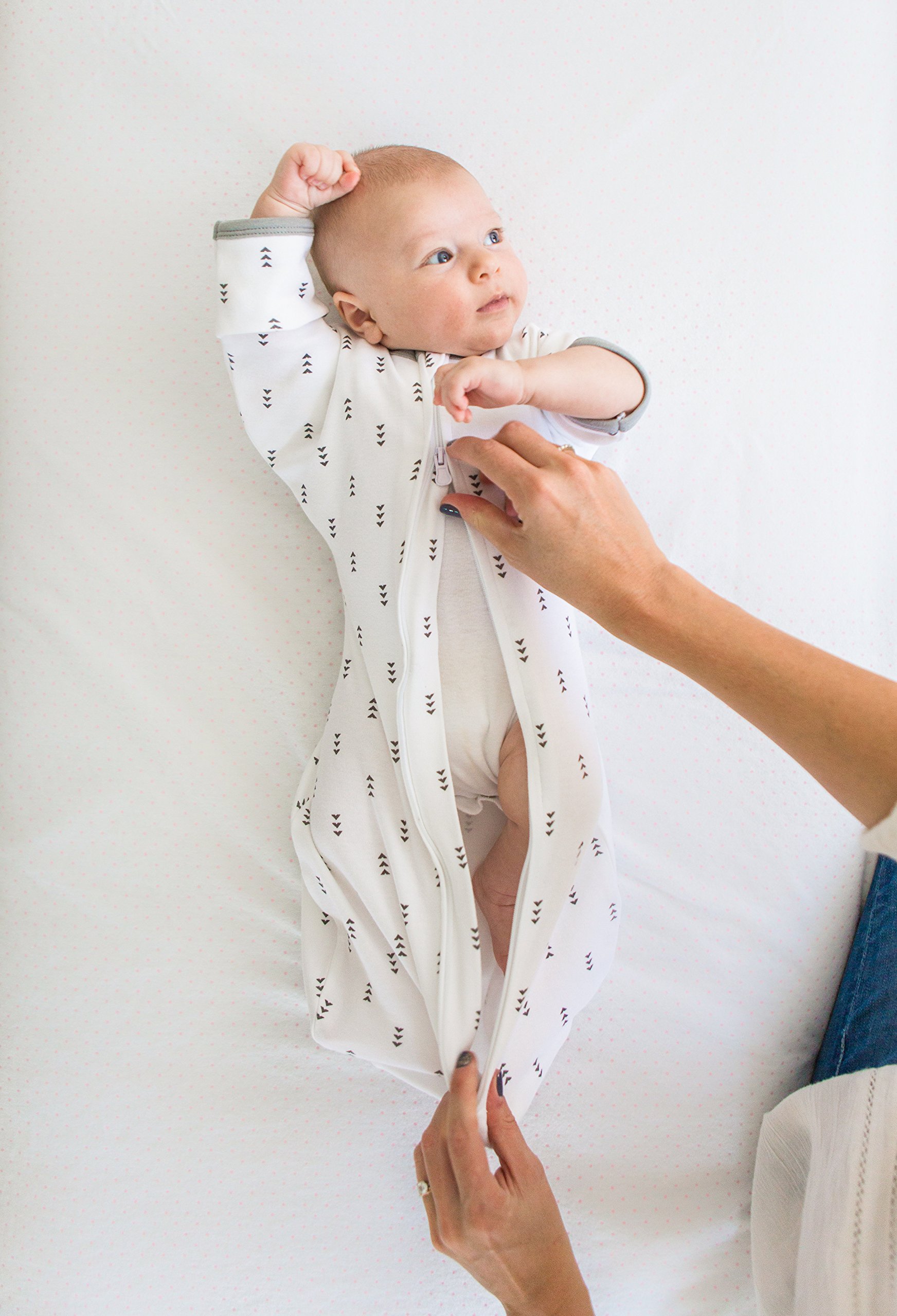 The TRANSITIONAL SWADDLE SACK allows baby to SELF-SOOTHE and promotes BETTER SLEEP and SAFER SLEEP. Perfect for babies who prefer to sleep with ARMS UP, babies who are starting to rollover, and babies able to break out of a traditional swaddle