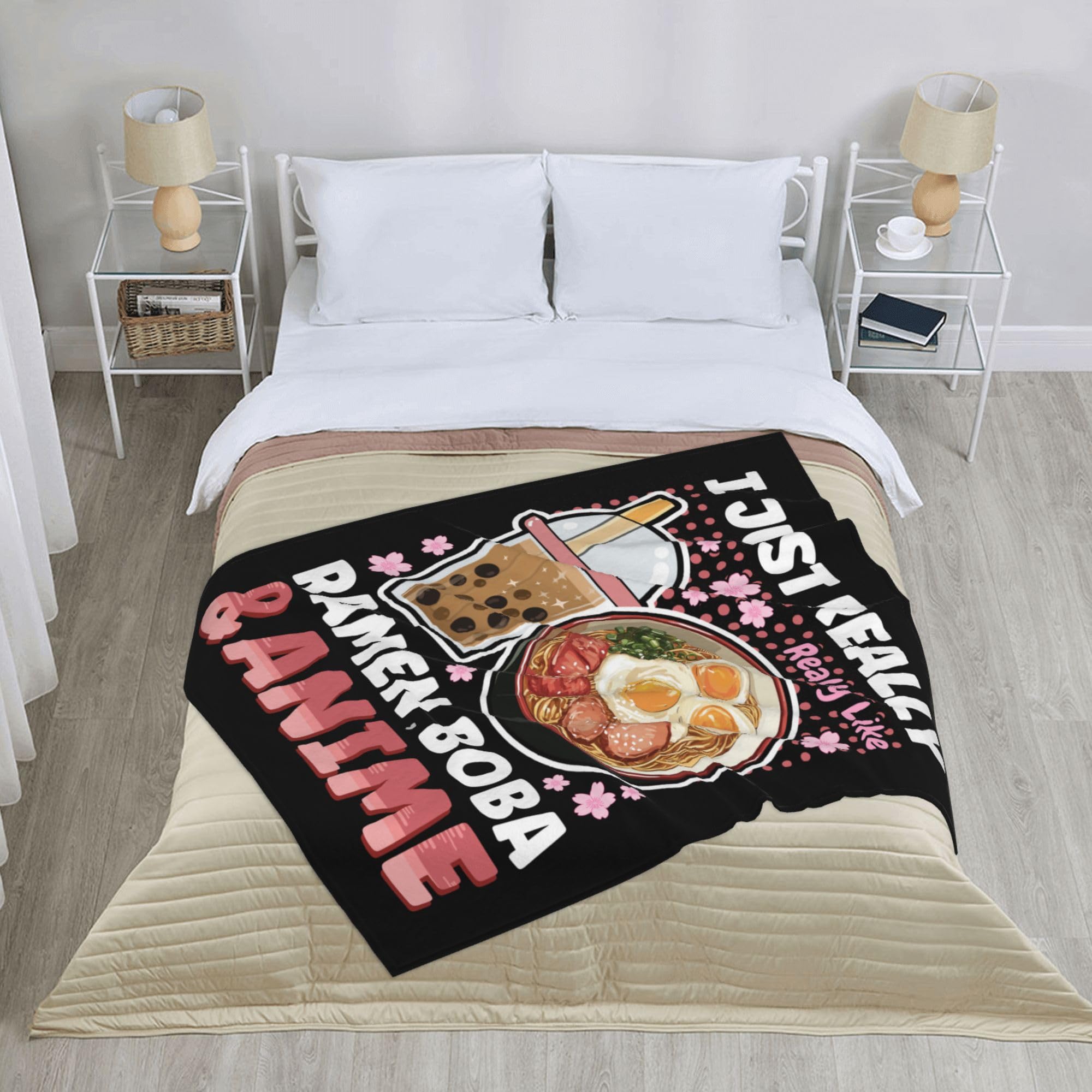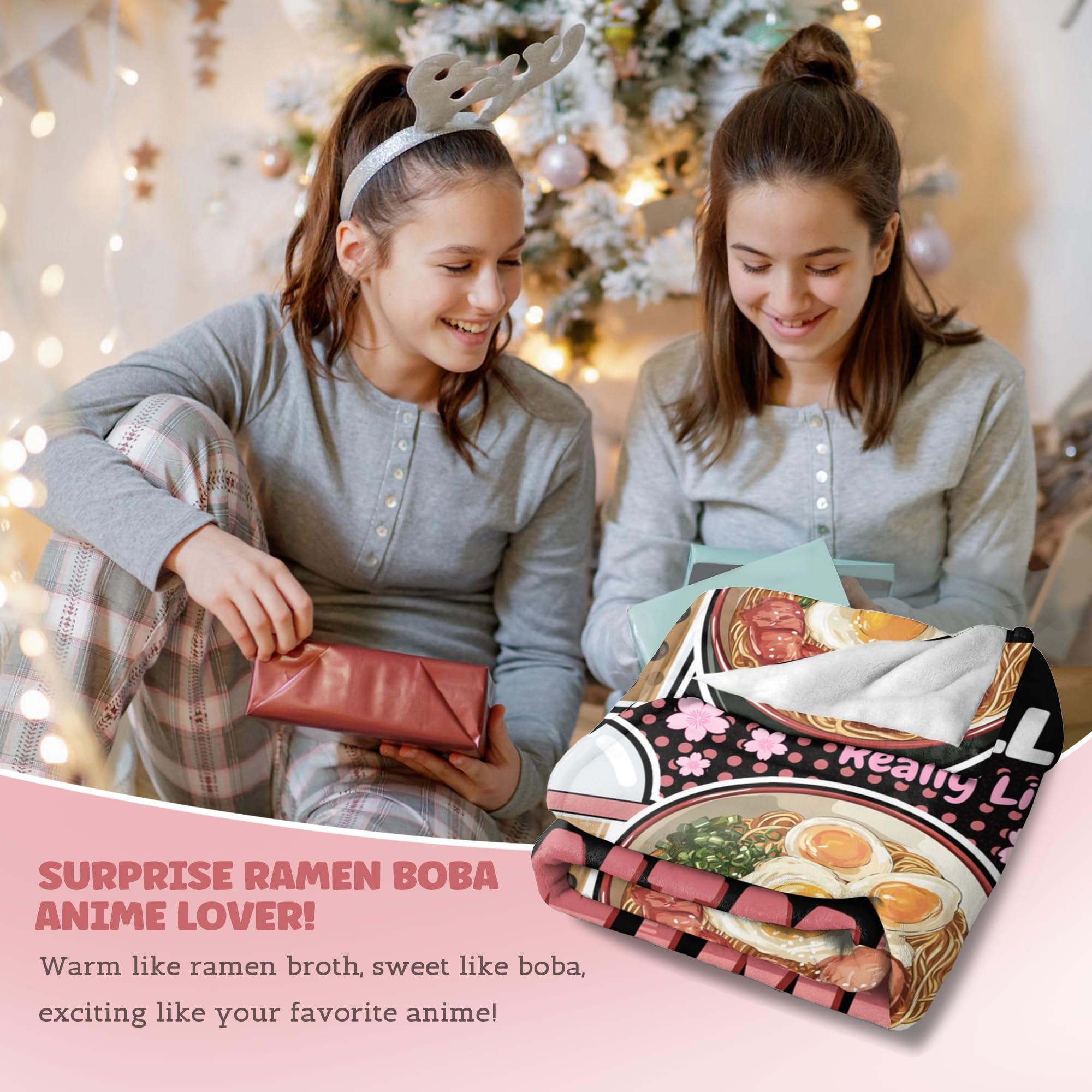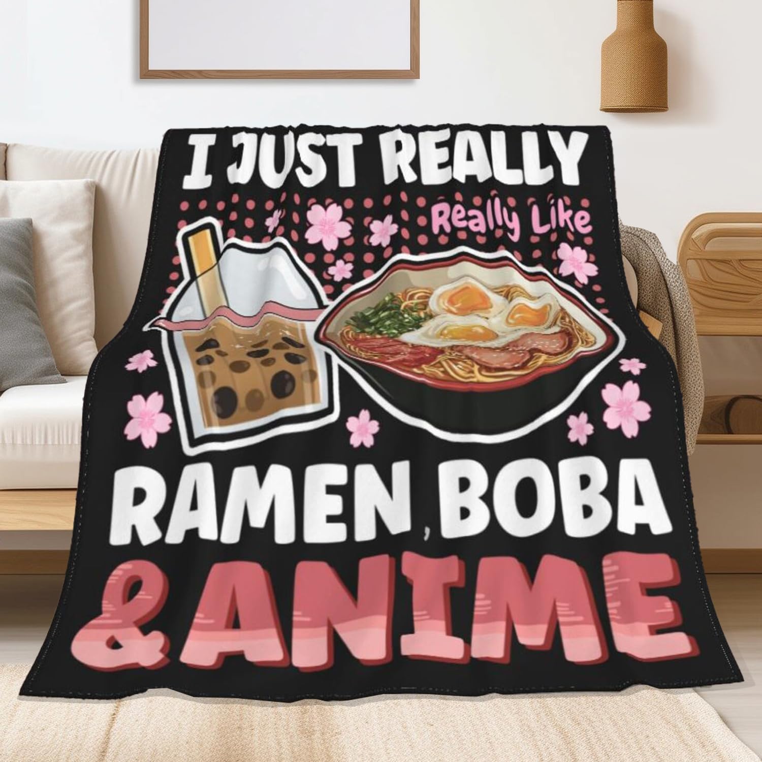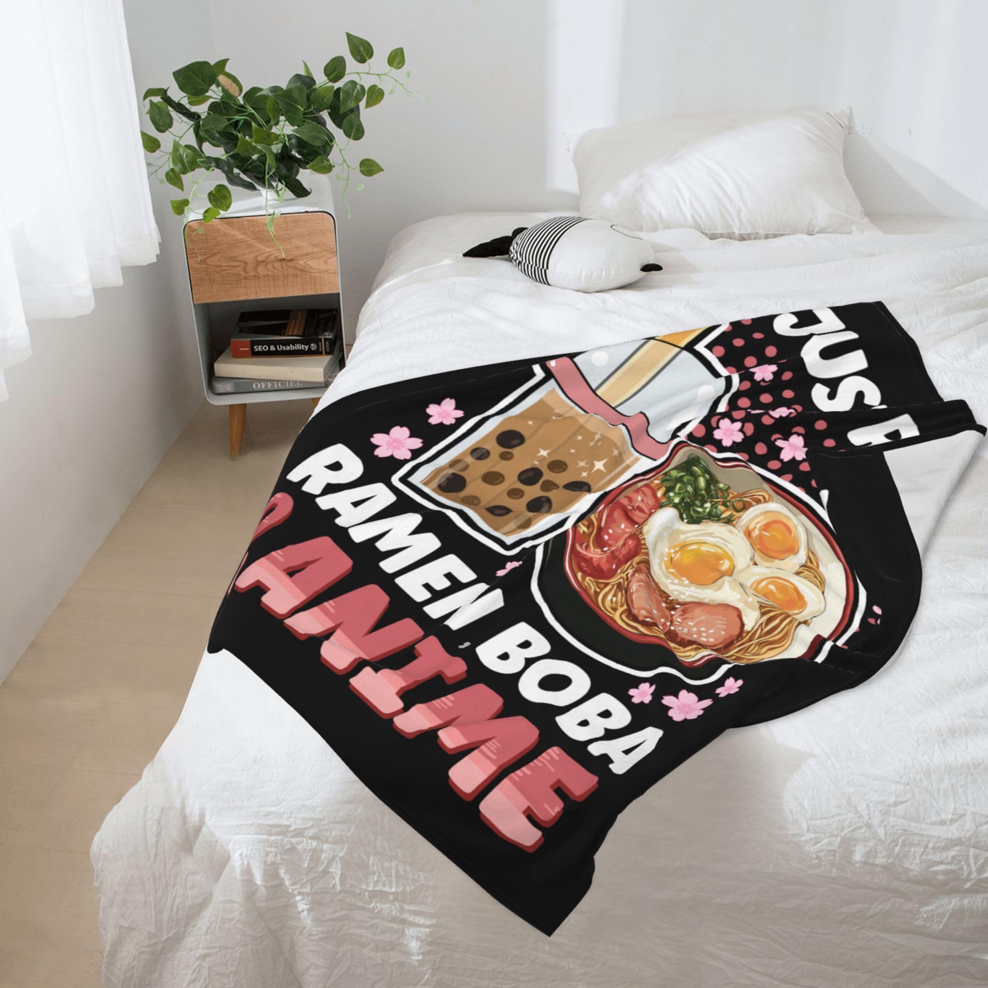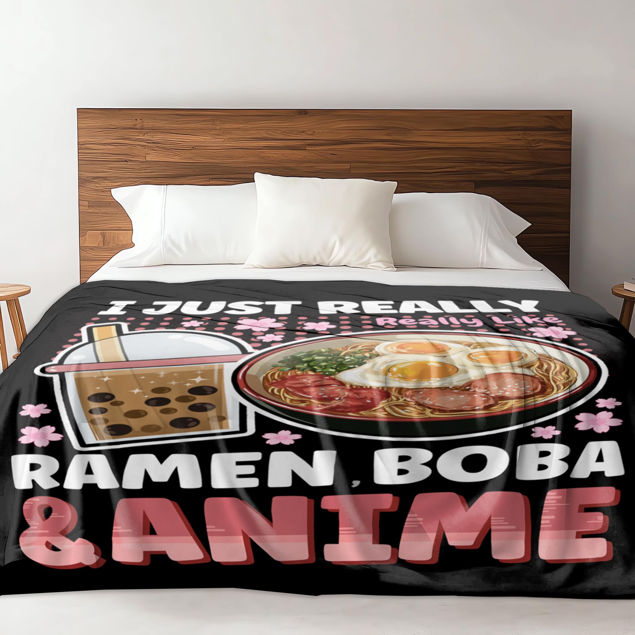 VERSATILE USAGE-This adorable ramen anime bubble tea print blanket is your perfect companion - whether you're binge-watching shows at home, studying in your dorm, or out camping and traveling. Lightweight and easy to carry yet super cozy, it keeps you warm during library sessions or outdoor adventures. Kids love snuggling with it while teens use it as cute bedroom decor. From home to outdoors, for children to adults, this versatile blanket brings warmth and charm to every moment of your day.