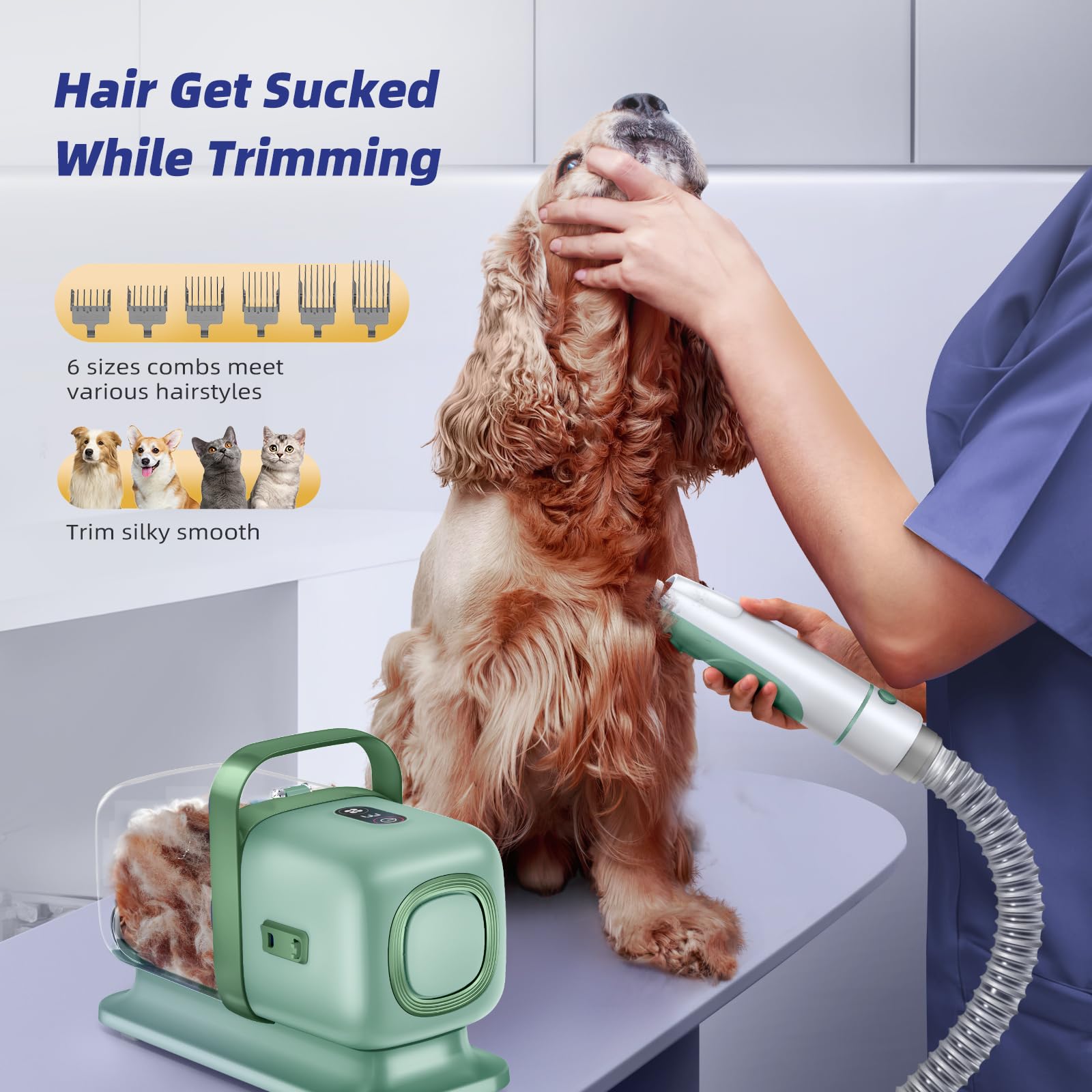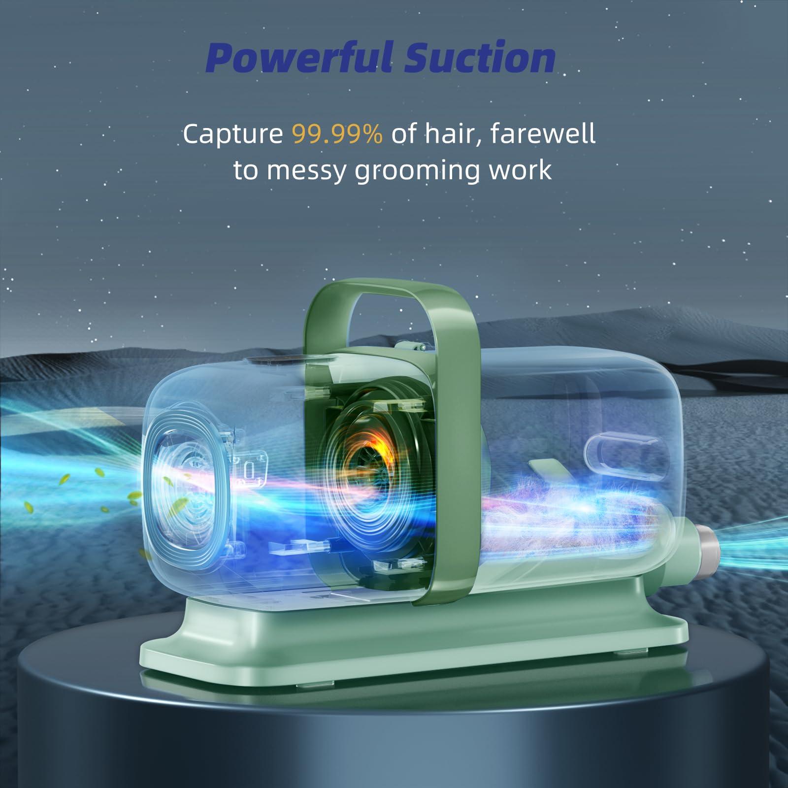 đžăYour All-in-One Grooming Solution with Vacuum FunctionăMeet the revolutionary grooming tool that does double duty! Our pet grooming vacuum for dogs combines professional-grade clippers with efficient suction technology. While trimming your pet's coat, the integrated vacuum system immediately captures loose hairs directly into the generous 2L dustbin. This innovative dog vacuum for shedding grooming eliminates flying fur and messy cleanups, making dog grooming sessions cleaner and more enjoyable for everyone involved.