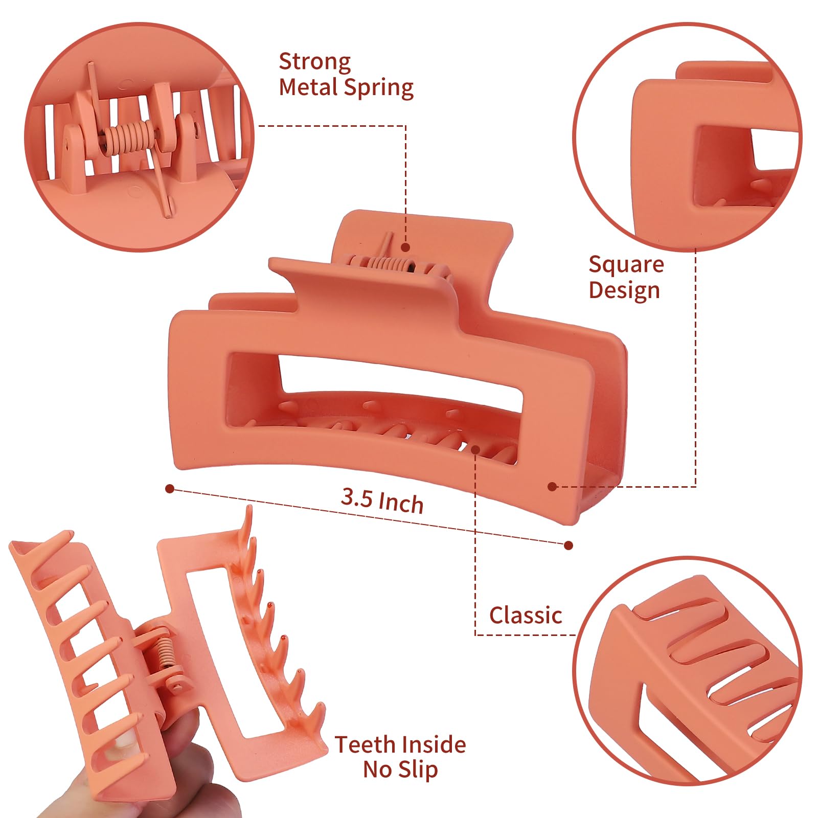 High Quality: These hair claw clips are made of high-quality rubber paint and plastic materials, strong metal springs. Comfortable matte texture and Acrylic quality and Non- Slip design.