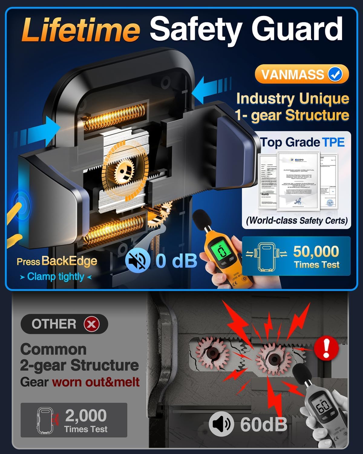 ใ๐๐๐๐ ๐๐ก๐จ๐ข๐๐: ๐๐ข๐ ๐ก-๐๐ง๐ ๐๐๐ซ ๐๐จ๐ฎ๐ง๐ญ ๐๐ซ๐ฎ๐ฌ๐ญ๐๐ ๐๐ฒ ๐,๐๐๐,๐๐๐+๐๐ฌ๐๐ซ๐ฌ ๐จ๐ฏ๐๐ซ ๐๐ ๐๐๐๐ซ๐ฌใ2025 VANMASS car phone holder is certified by all authoritie5 (International Military-Grade Shockproof Cert No. GZMR230200285101, CP65,REACH,RoHS), based on Unique Grandmaster Design (EUIPO Patent No.006590790-0003), TOP Durable & Healthy Materials from 20,900 materials & Industry-Leading Safety Tests (Monthly 5,000+ open/close test; 100,000+km rugged road tests)