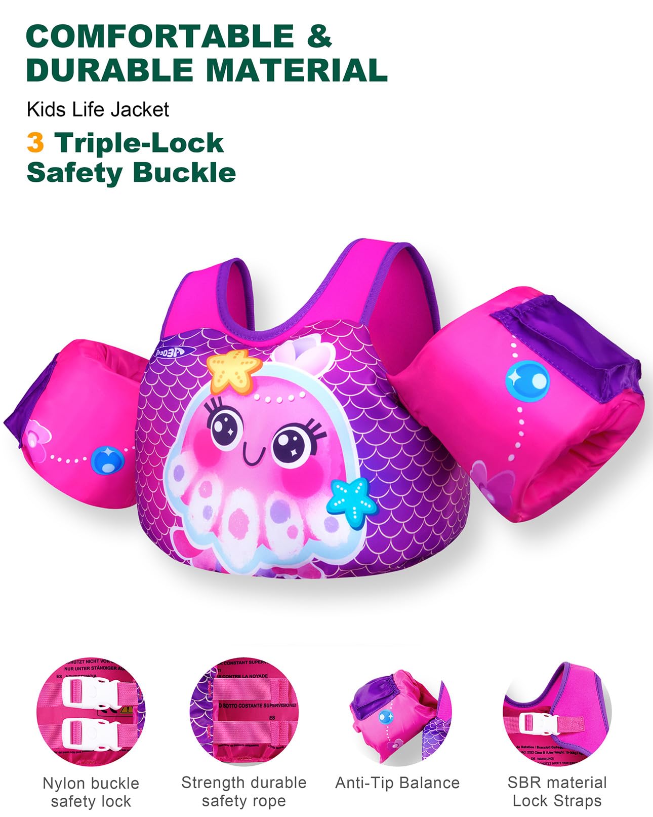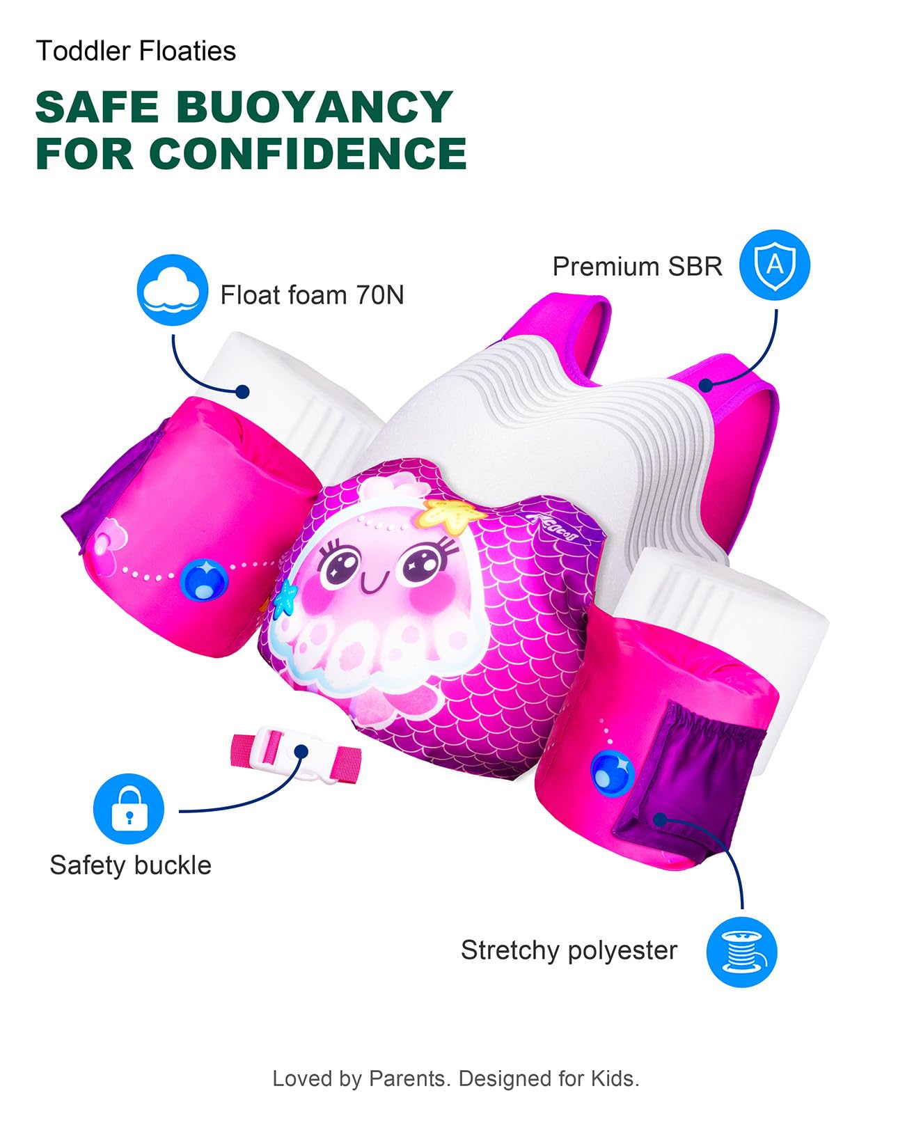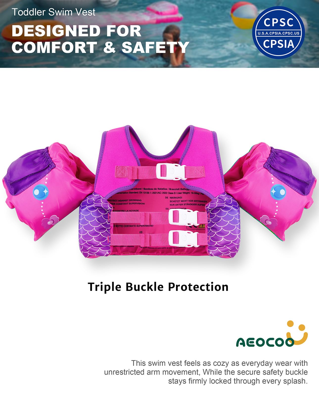πππ πππ π ππππ: Triple buckle protection, floaty sleeves, and reinforced backstitchingβparent-approved safety for worry-free splashing in any toddler swim vest, puddle jumper 20-30 pounds, or swim vest for toddlers 1-2.
