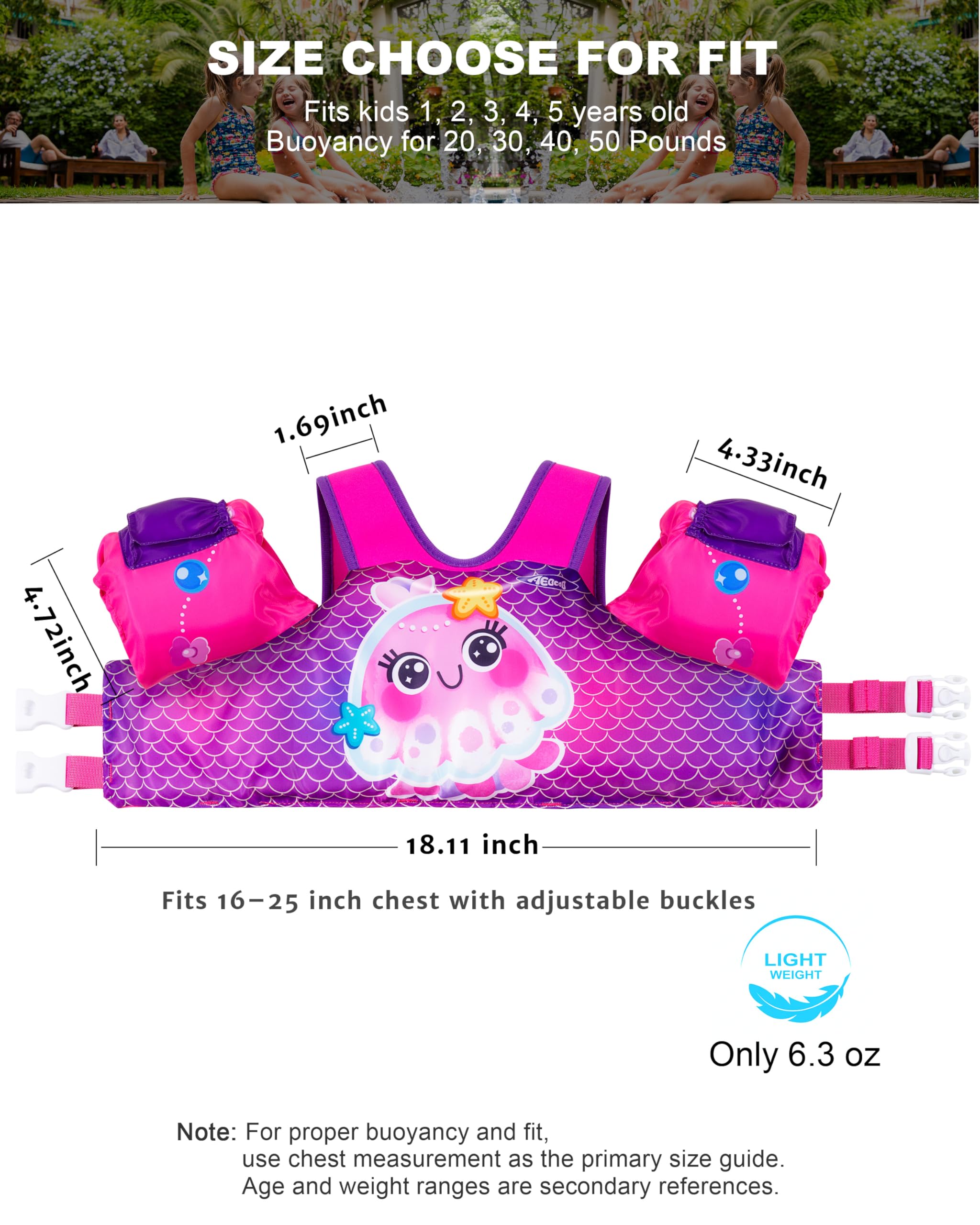 πππππππππ π ππ: Adjustable back buckle and crotch strap perfectly fit kids 20-30-50 lbs (chest 16-25") at every stage for lasting, worry-free water funβideal puddle jumper 30-50 pounds or toddler floaties 30-50 lbs fit.