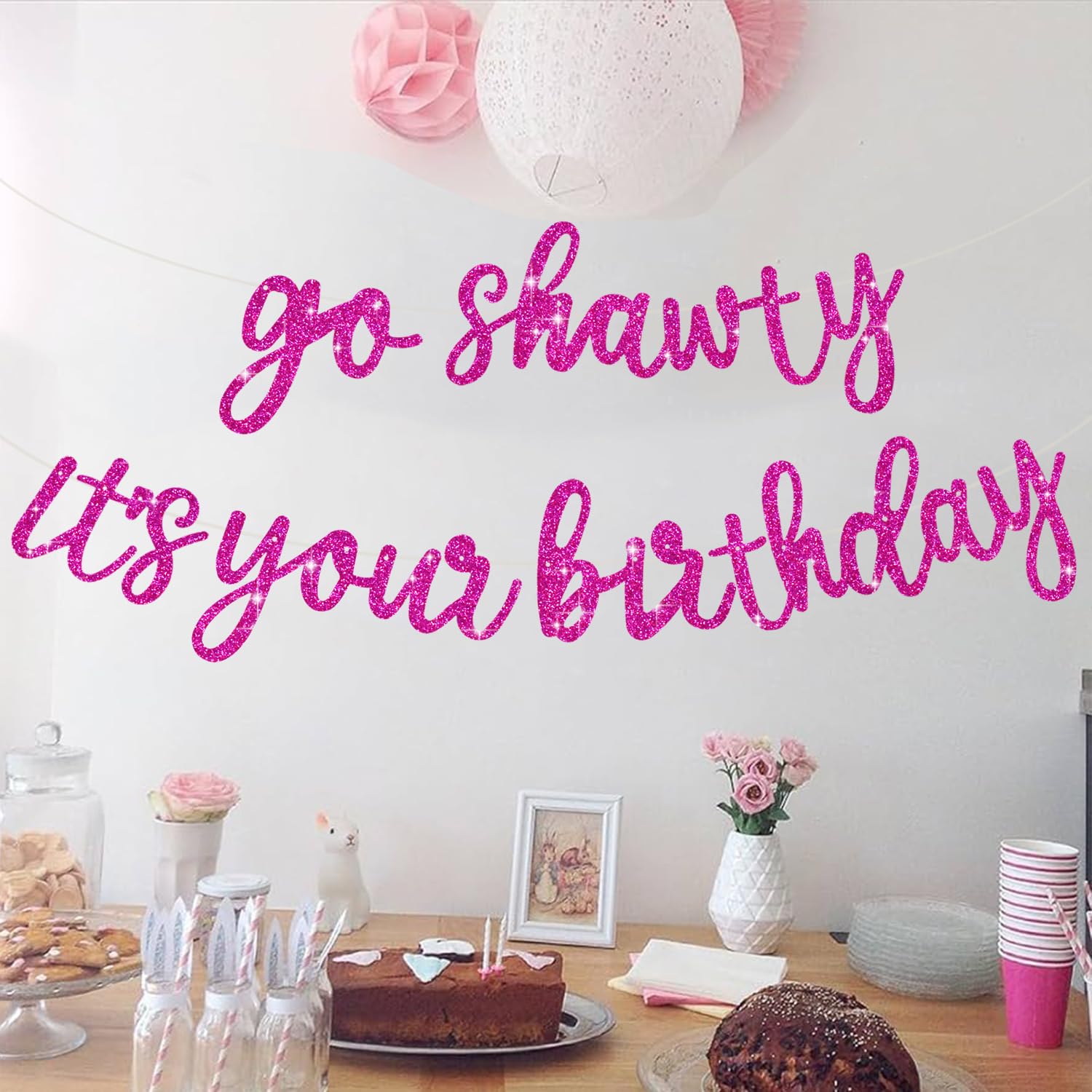 · Product includes : A Glitter NO DIY Go Shawty It's Your Birthday Banner is included in our product. It is a very convenient birthday banner that can save your time and decorate your birthday party very well.