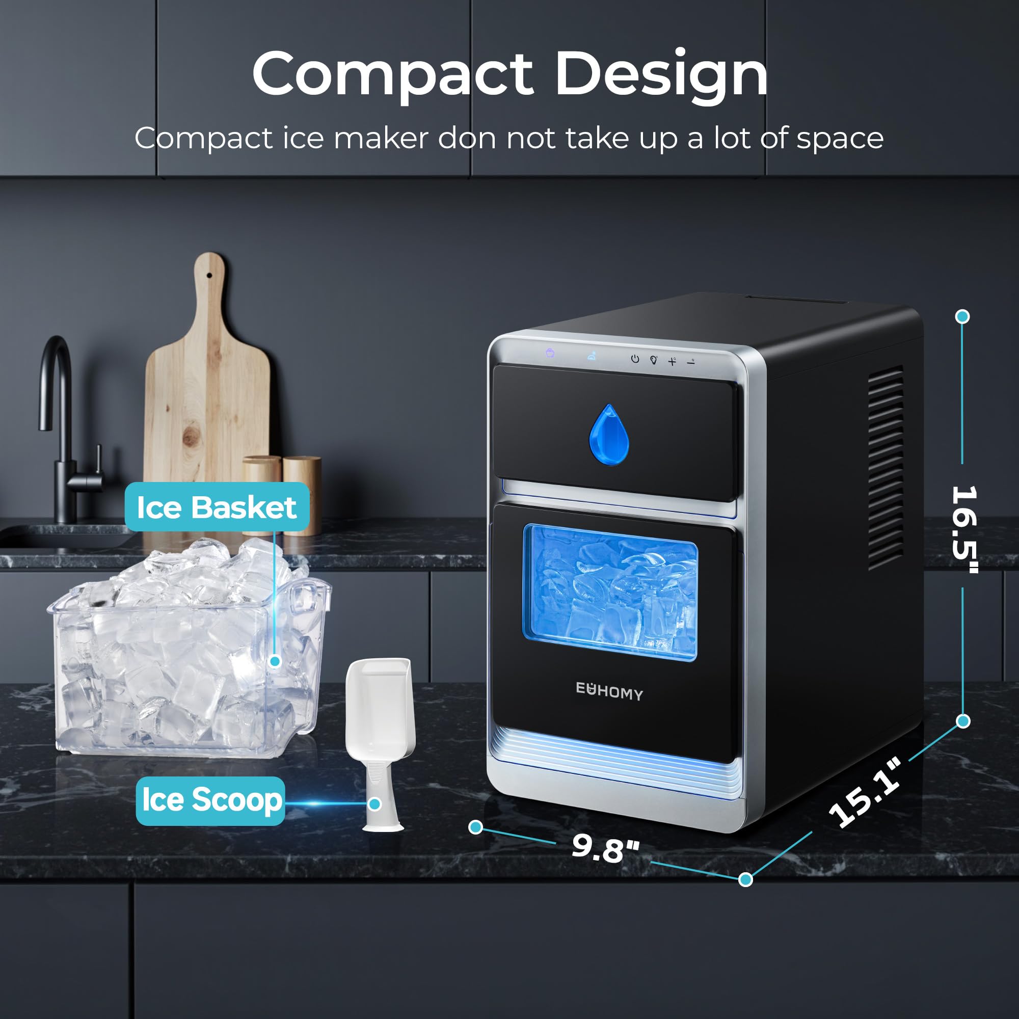 Rapid Ice Production:The Euhomy crescent ice maker countertop delivers 16 pristine ice cubes in just 12 minutes, with a 1.8L large-capacity water tank that produces up to 1,500 crystal-clear ice cubes per day. Perfect for home use or entertaining, this portable ice maker ensures a steady supply of fresh ice—so you’ll never need store-bought ice again!