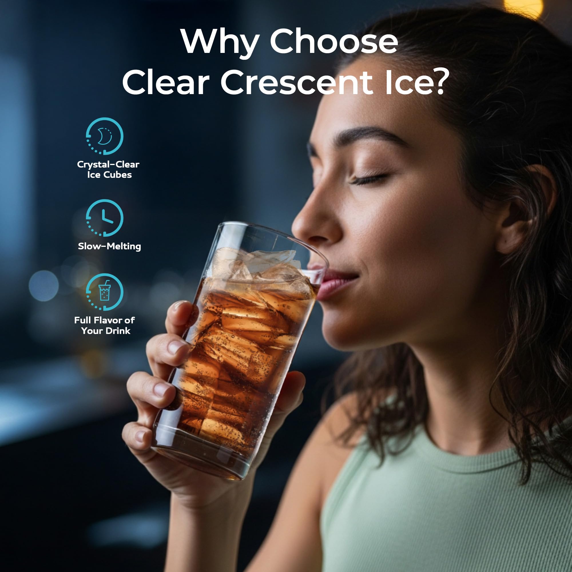 Effortless One-Touch Operation:No complicated setup—just press the ‘ICE’ button, and your clear crescent ice begins flowing instantly! Designed for hassle-free convenience, this countertop ice maker delivers quick, effortless ice production at the touch of a button, so you can enjoy perfectly crafted ice without the wait.