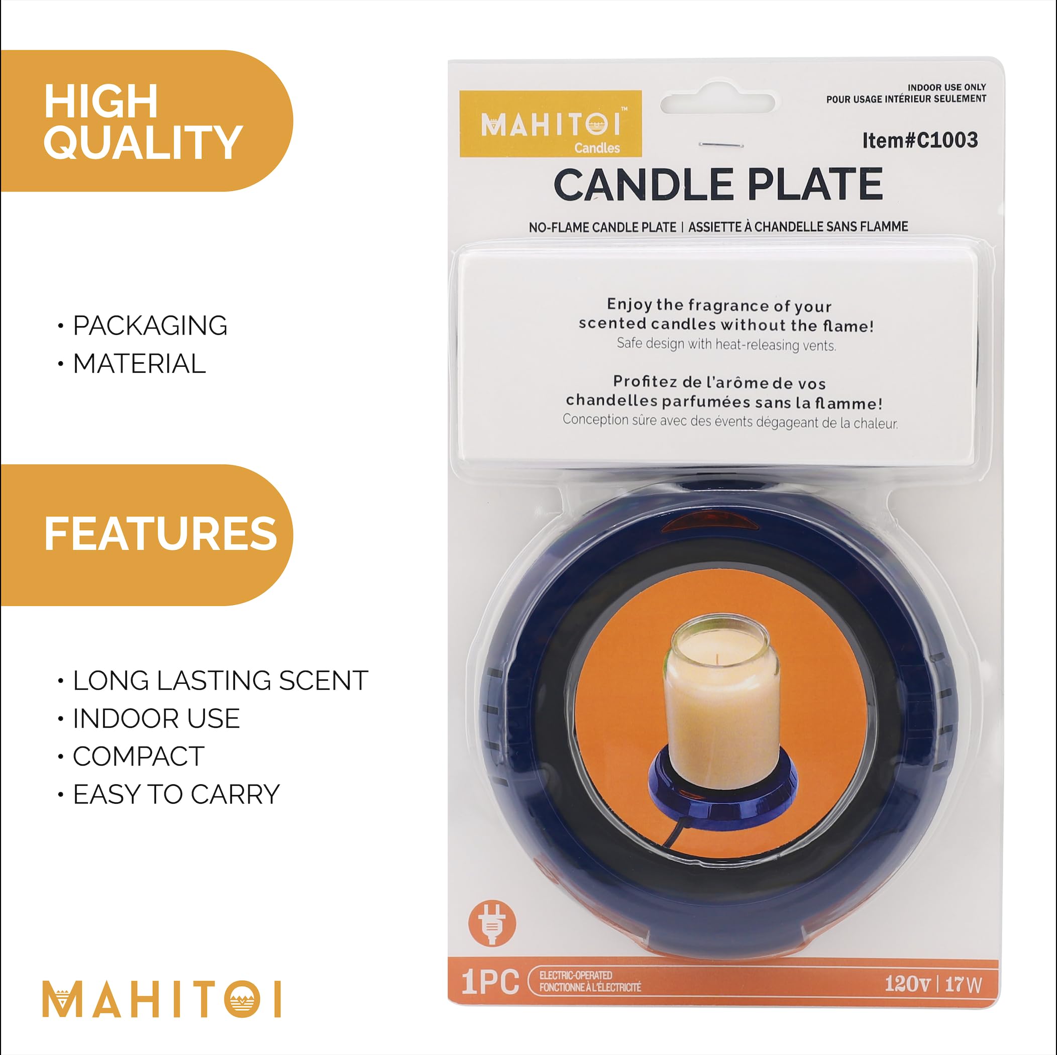 CORE COLLECTION: The M Heater Plate is 4” width & includes a switch with light signal. It fits best with non-lit candles up to 4 inches that are in glass jars or metal containers