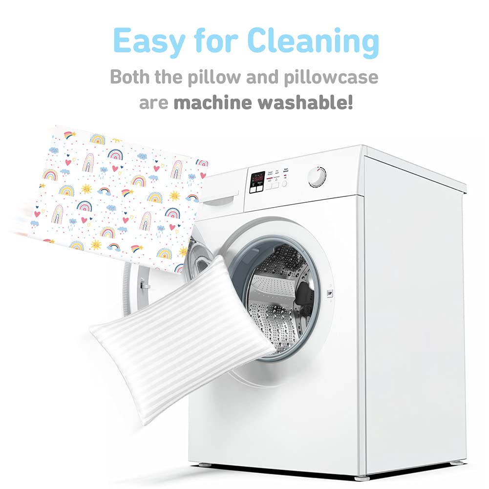 Machine Washable & Durable: Our Toddler Pillow with Pillowcase are both machine washable, easily deal with the issue when mess always happens with toddlers around, keeping the pillow clean and fresh