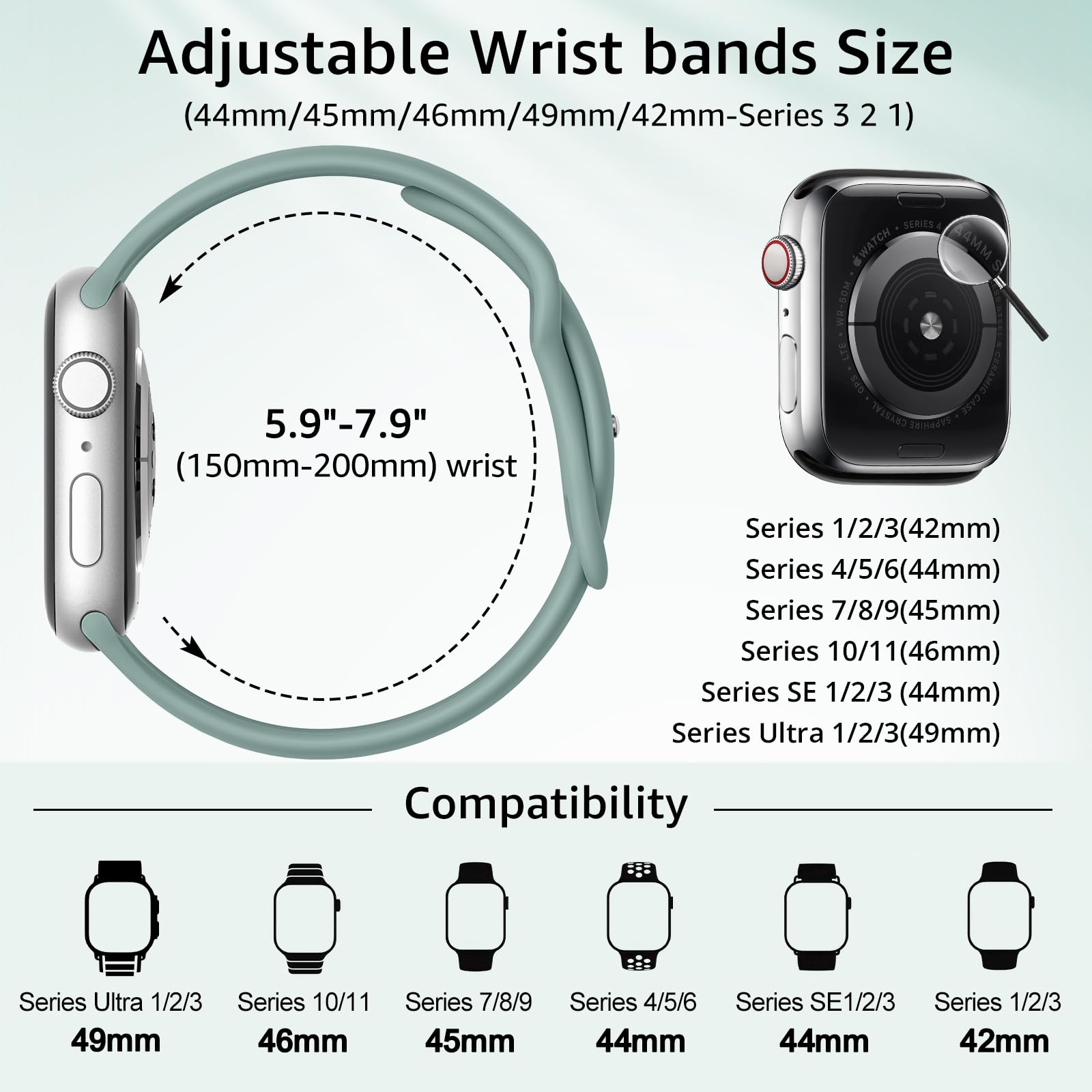 【Compatible Models】 AMSKY sport silicone bands compatible for Apple Watch 38mm 40mm 41mm 42mm 44mm 45mm 46mm 49mm,iWatch series 11,iWatch series 10.iWatch series 9,iWatch Series 8,iWatch Series 7, iWatch Series 6, iWatch Series 5, iWatch Series 4, iWatch Series 3, iWatch Series 2, iWatch Series SE,iWatch series Ultra/2.Please check the size on the back of your watch to choose the right size.