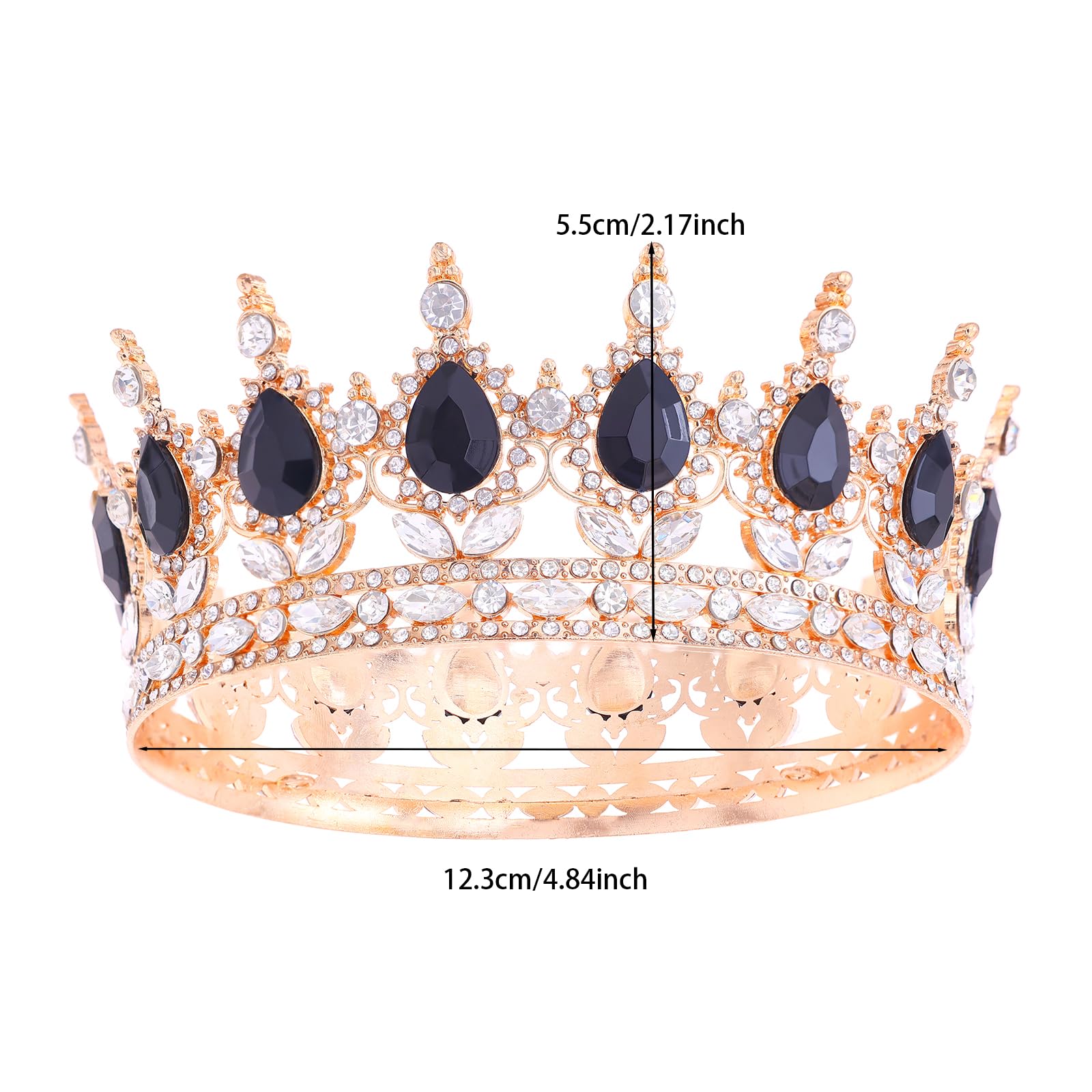 Size and Package: Our tiara crown are suitable for adult women, Diameter about: 4.72 inches, Height about: 2.0 inches, Weight about: 0.344 lb. The package includes clear box and four clips to fix the crown on your head and brings you a long and comfortable wearing experience.