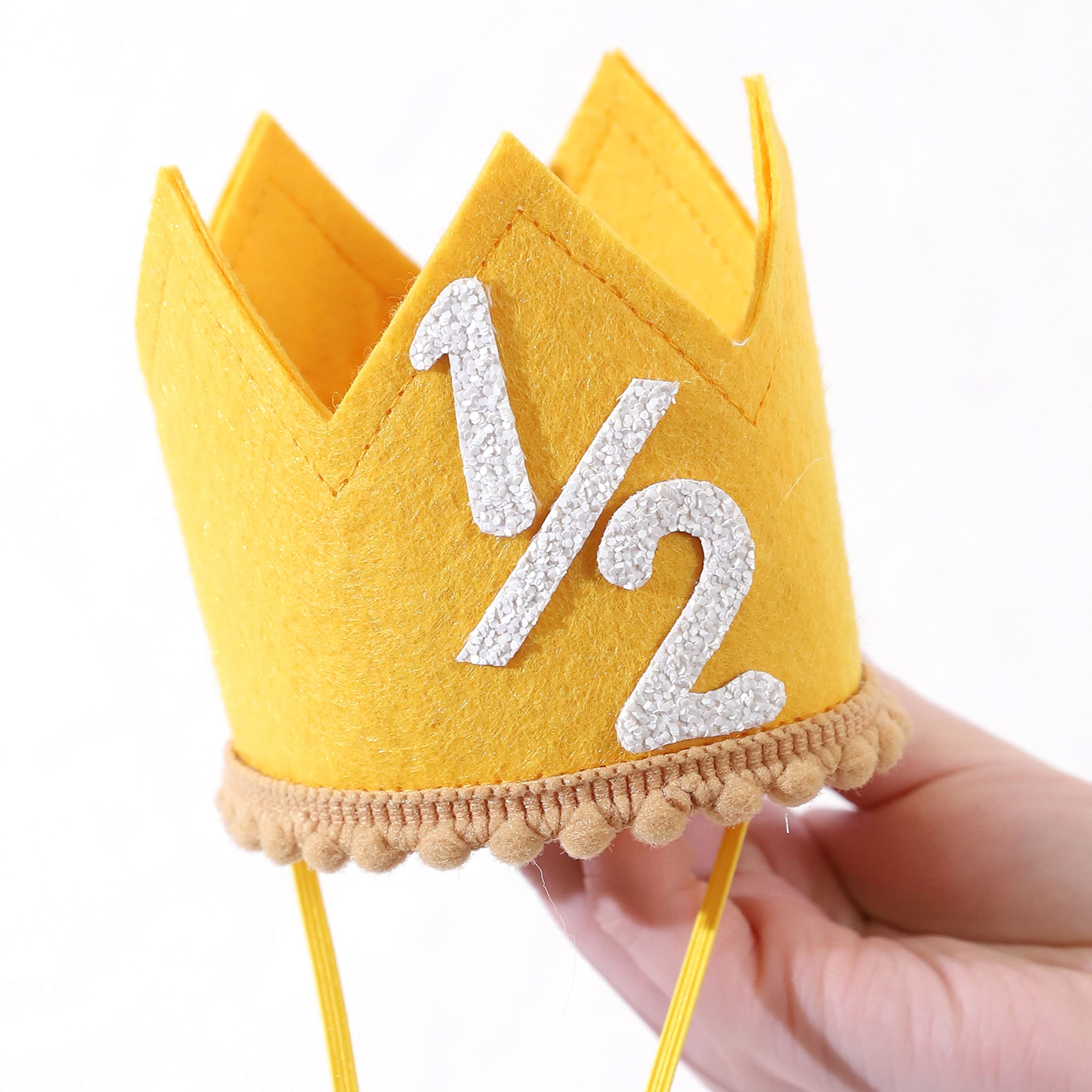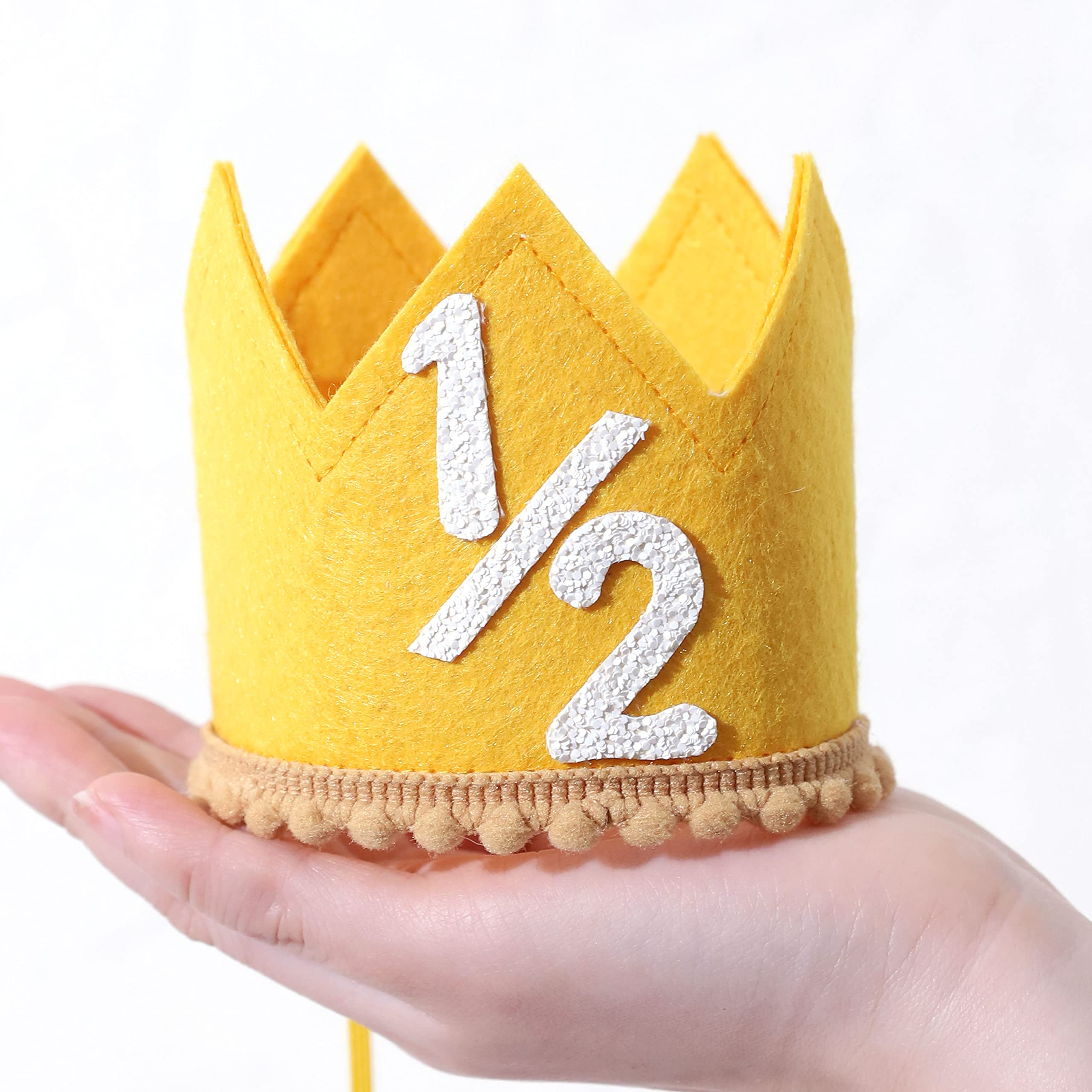 FUN AND VIBRANT COLORS - The candy color half birthday crown hat is a cute and colorful accessory that is perfect for your little one's half birthday celebration , pink , brown , yellow and blue , we have prepared four different color combinations for you to choose for your birthday party with different themes