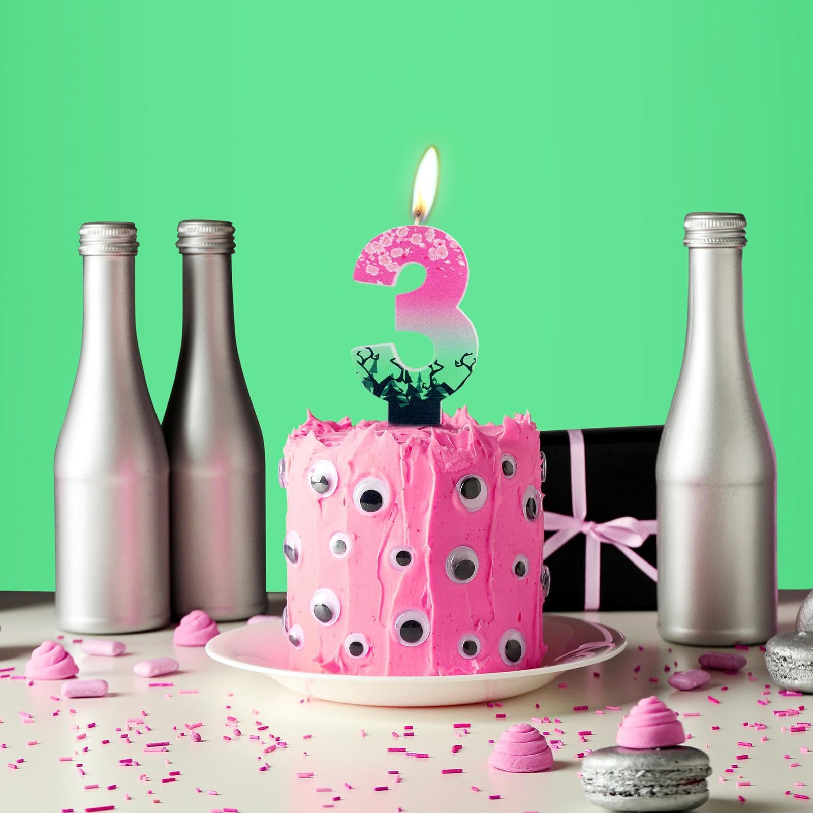 🎂【Cake Candle Information 】:You'll get 1pcs number 0 numeral candle.The birthday candle length 2.83 inches/7.2CM high,1.89 inches/4.8CM pole not included,Perfect for pink and green party decorations,witch birthday decorations,and enchanting witch themed party decorations.