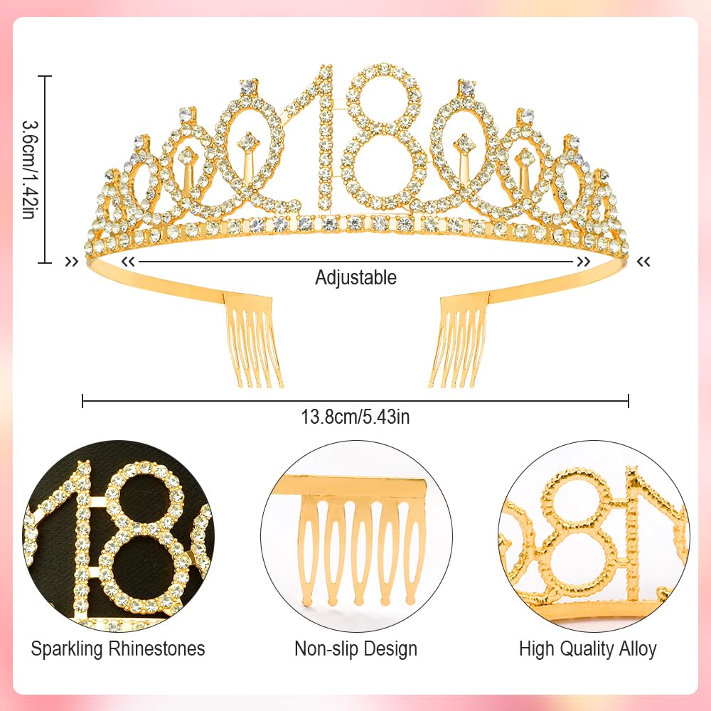 πBirthday Crown for Girls: 18th birthday sash, 18th birthday crown, 18th birthday decorations, 18th birthday gifts idea,18 year old girl birthday gifts,18 year old birthday sash and crown, 18 year old birthday decorations, birthday accessories for women, happy birthday crown thoughtful unique gifts for colleague, educator, teacher, nurse, doctor, godmother. Perfect for special birthday girl party.