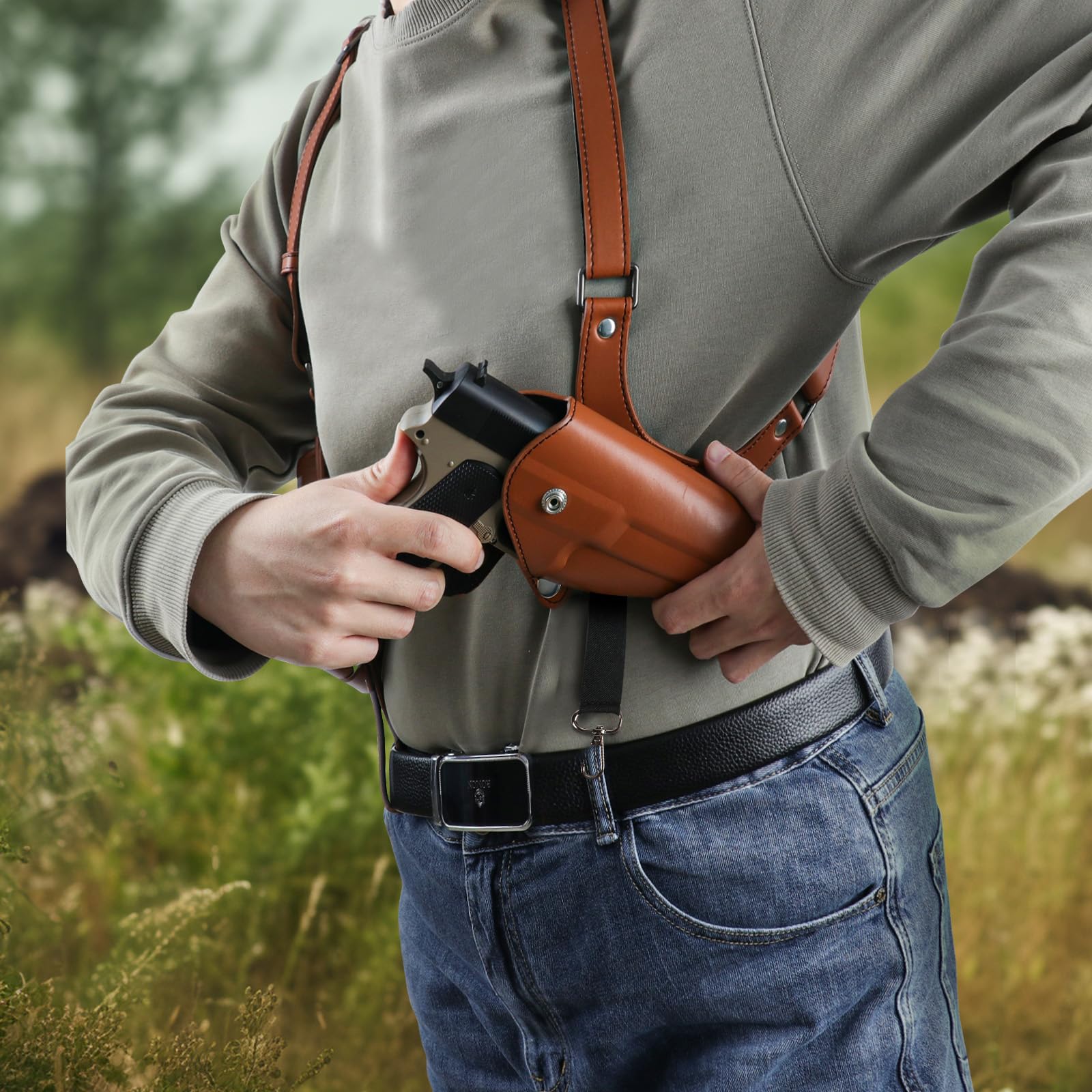Suitable for most pistols: Our universal shoulder holster fit a wide range of handguns, including Glock17/17C/17L/19/20/20C/22/23, Sig Sauer P220/P226/P227/P320, Ruger P85, Beretta92FS, full sized1911's, and firearms of similar sizes.
