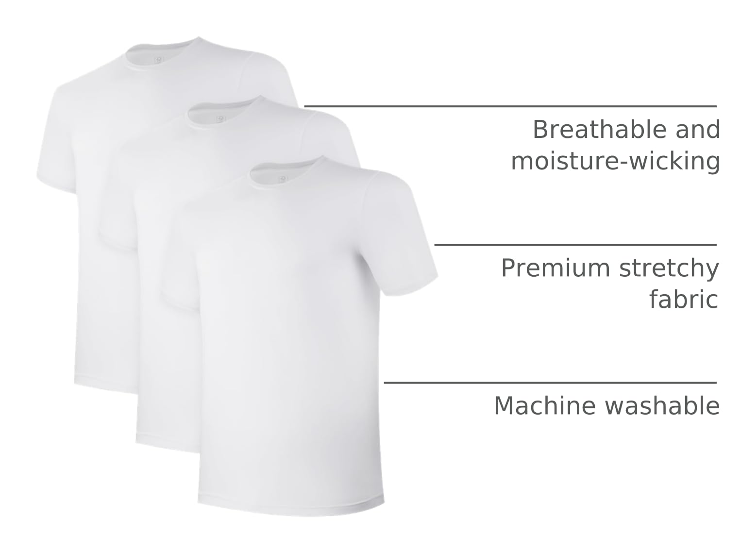 Premium Moisture-Wicking And Cool Undershirts: Our 3-Pack Mens White Tee Shirts Are Softer And Stretchy Than Traditional T-Shirts, And Are Highly Breathable, Suitable For All Seasons