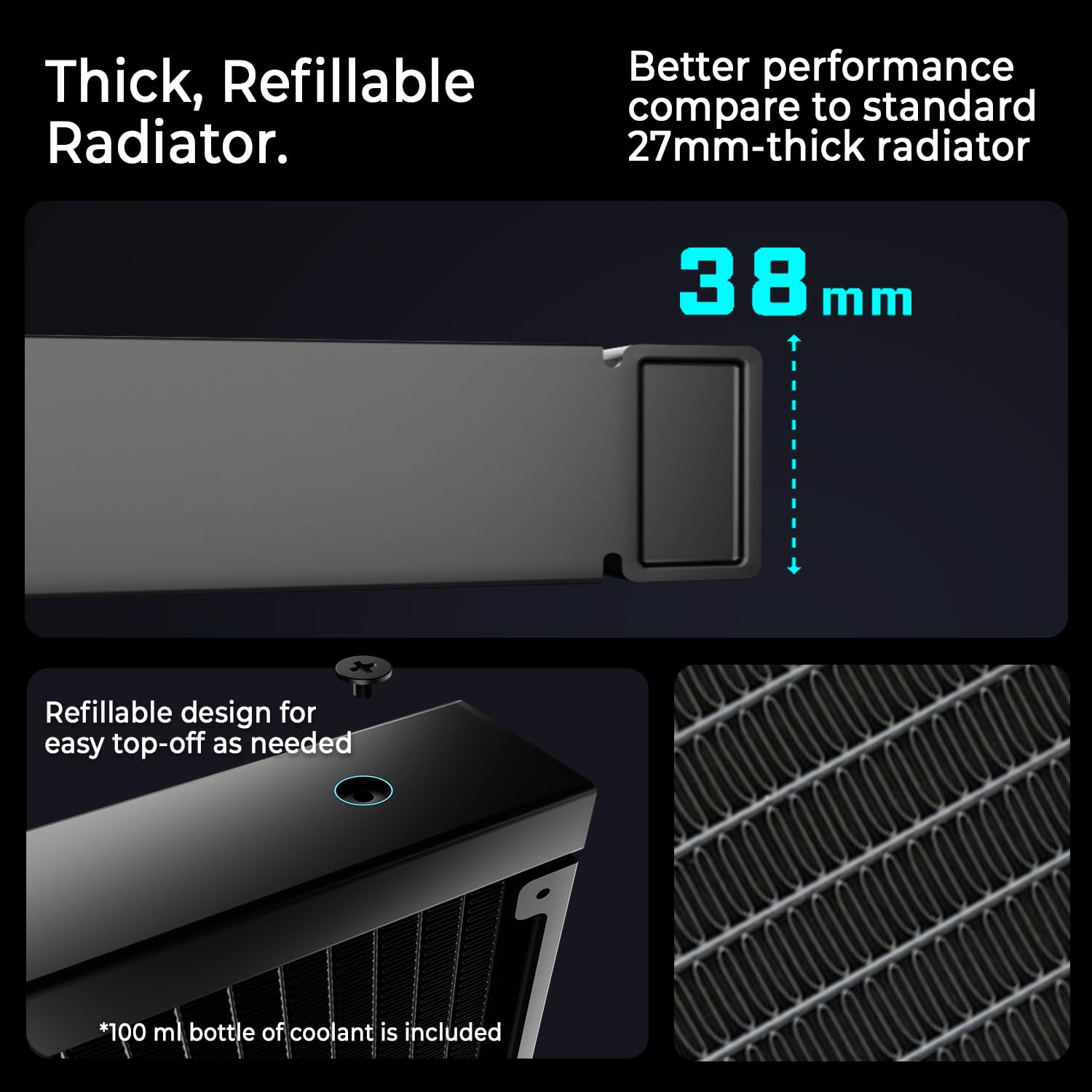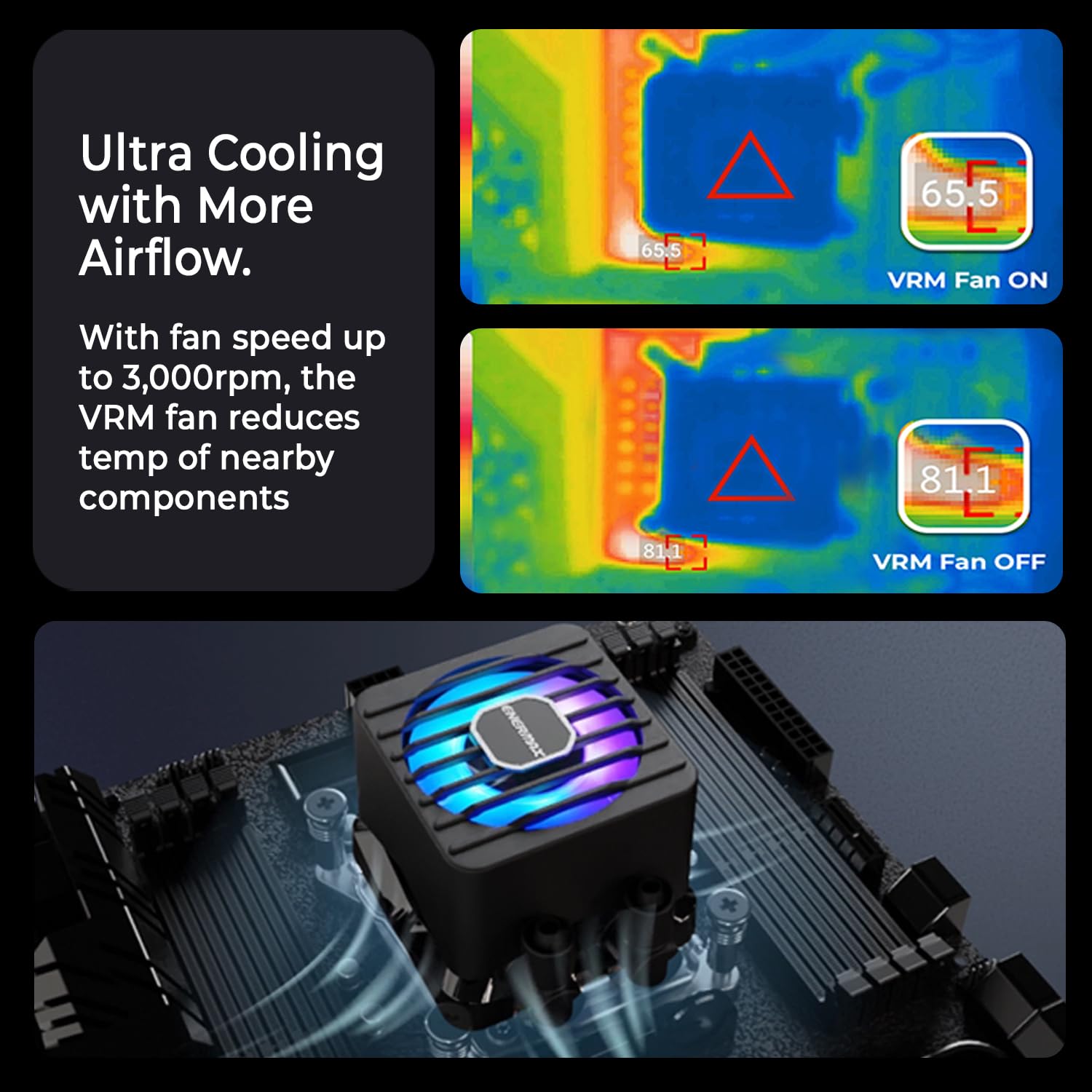 With all PWM-Controlled designs, allows automatic control of the newly designed, pressured-optimized FDB bearing fan, VRM fan & pump for enhanced silence and cooling performance