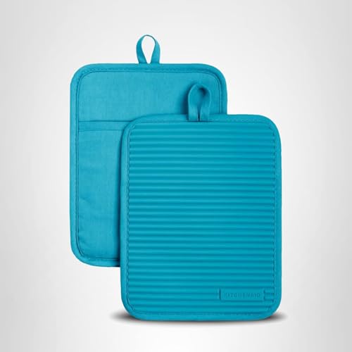 DURABLE, HEAT RESISTANT SILICONE - The KitchenAidRibbed Soft Silicone pot holders are heat resistant up to 500 degrees Fahrenheit to safely shield hands from the heat while cooking and handling hot pans and dishes.