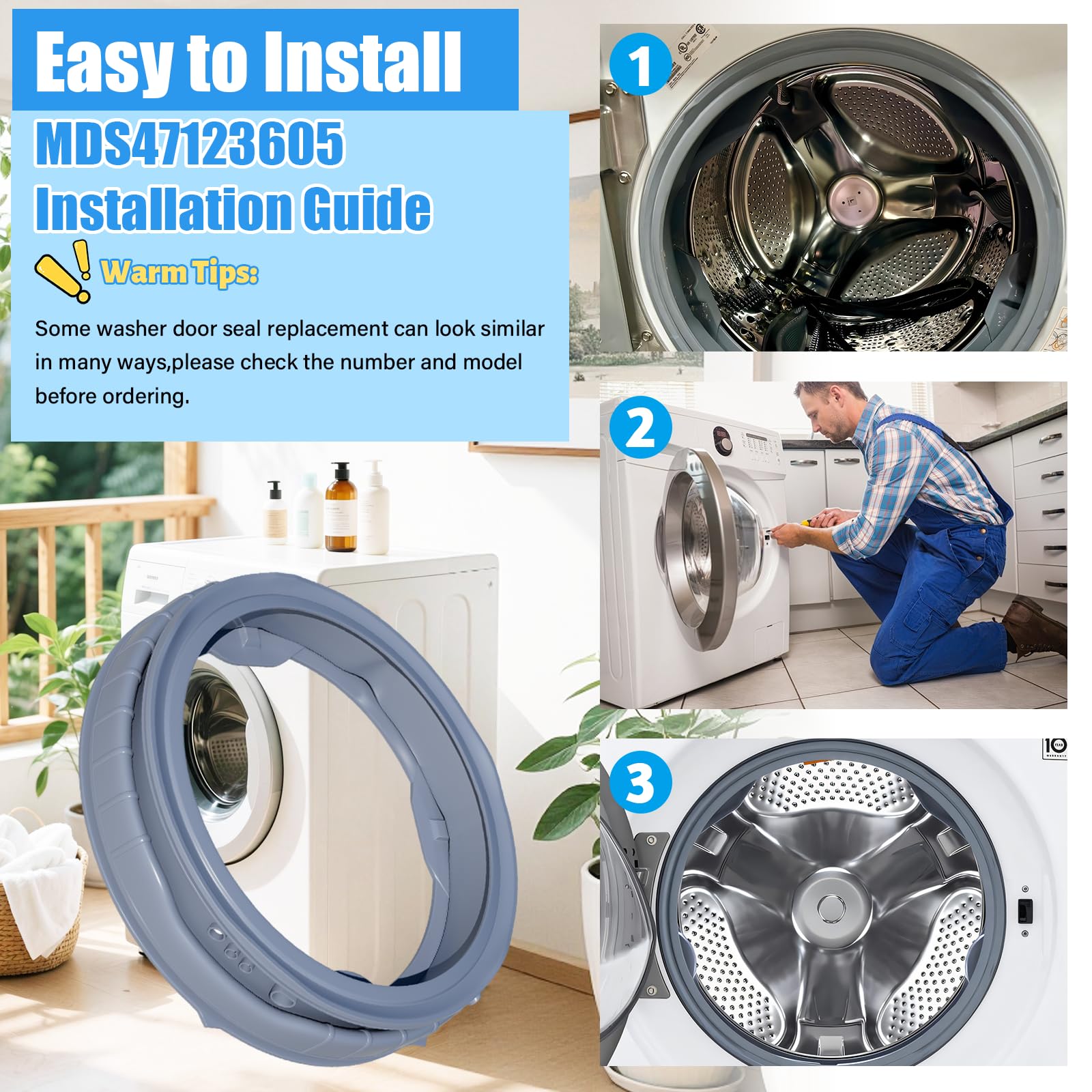 【Easy to install】Replacing the seal is the best maintenance you can do for your lg front load washer seal. Just remove the tension wire on the outside and the drum. You can look up for a YouTube video how to change the MDS47123605 door boot gasket, Unplug the washer before installing this part. Wear work gloves to protect your hands