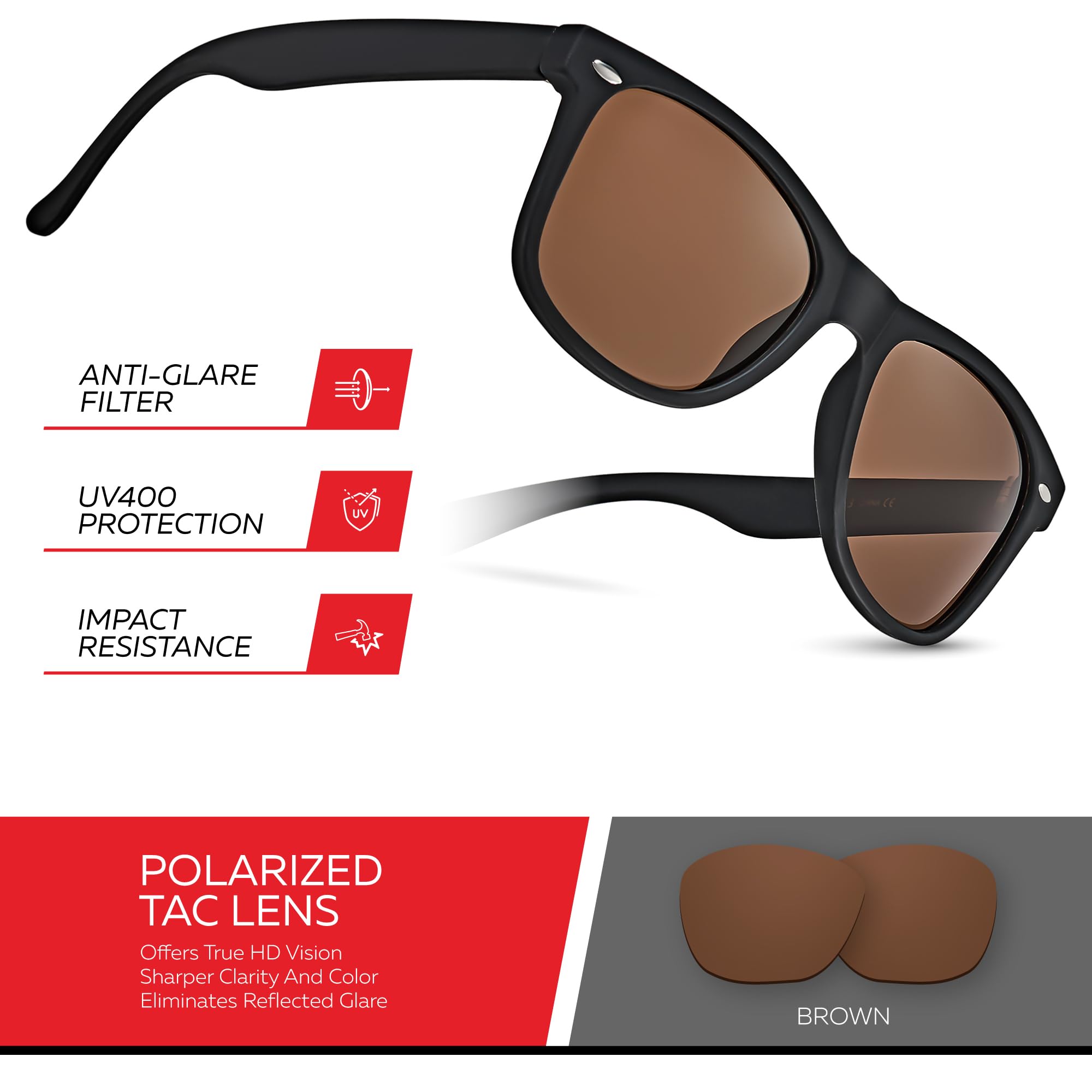 🕶️ TIMELESS CLASSICS WITH ADVANCED LENS TECHNOLOGY: Tie your whole outfit together with a pair of unisex classic polarized sunglasses. Available with neutral or Revo mirror coated lenses, these polarized sunglasses provide a high level of sun glare reduction protecting your eyes outdoors, even under intense sunlight conditions. The multi-layer Revo lens coating allows for rich, saturated colors throughout the entire surface of the lens.