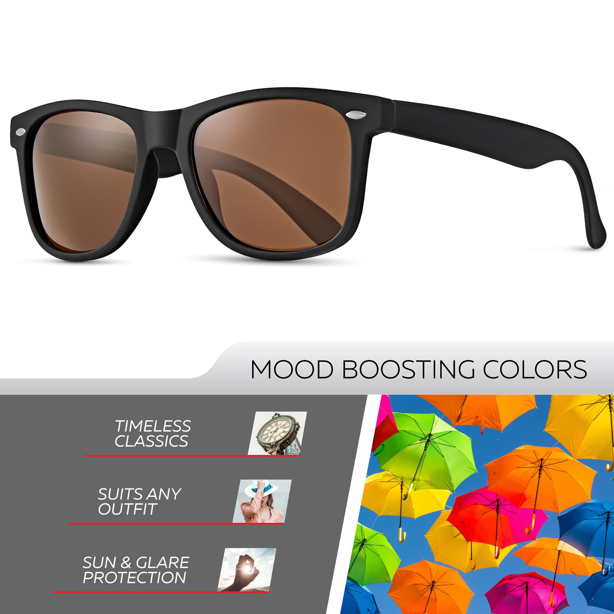 🕶️ DESIGNED TO PLEASE ANY TASTE, ANY SHAPE AND MATCH ANY OUTFIT: The Retro Rewind Sunglasses are a mixture of vintage style, contemporary fashion, and modern technology. The sunglasses will put an exclamation point on your casual, business casual or athletic outfit and help you look sharp, crisp, and sophisticated! Available in 50+ color combinations.