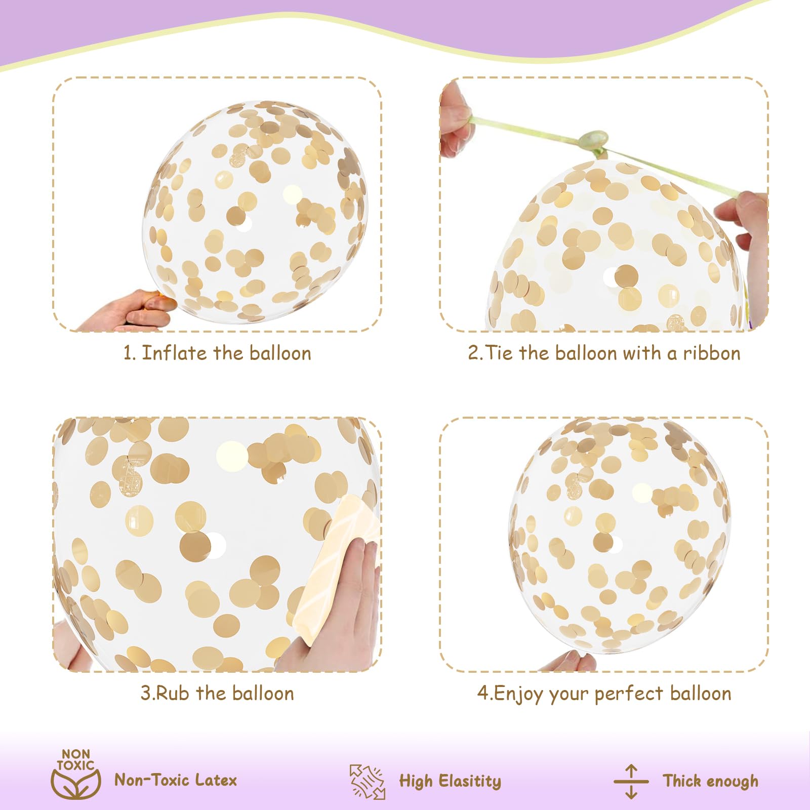 ღ【Safe To Use】: The purple gold confetti balloons party decorations are made from natural latex material, with high quality, non-toxic, non-odor and safe for kids.The balloons are thick enough so it would not easy to explode.