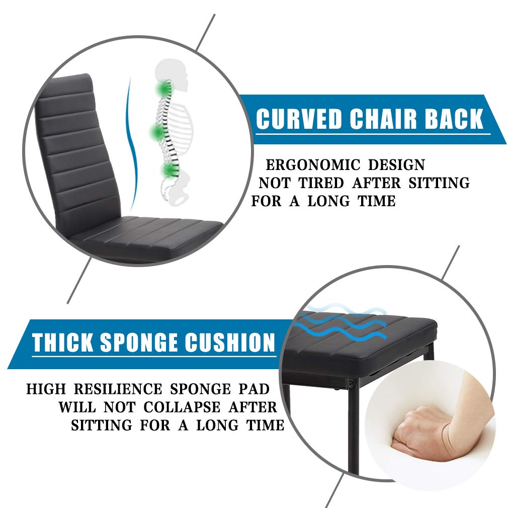 EASY TO CLEAN: The smooth glass tabletop and PU leather seats wipe clean quickly, making this dinner table for 4 easy to maintain, helping you keep your dining area fresh, tidy, and mess-free.