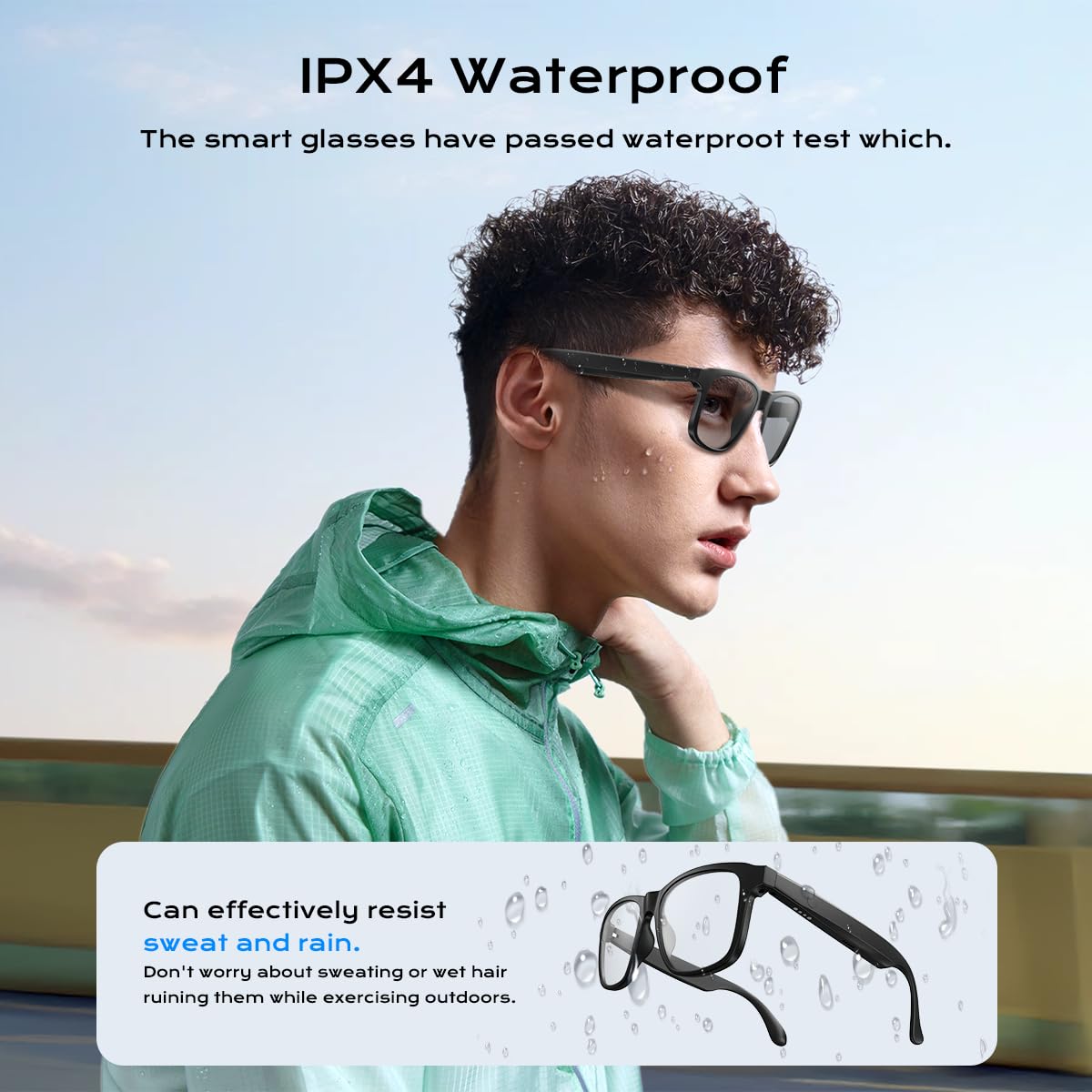 【Anti-Blue & Photochromic Lenses】XO smart glasses feature UV400 photochromic lenses that provide superior color, clarity and contrast, while effectively filtering out harmful glare and sun damage. Under outdoor sunlight, the lens color changes from transparent to light gray, and from light gray to transparent indoors. Indoor anti-blue light, protect eyes from eye strain. Outdoor photochromism protects eyes from sun irritation. Guard your eyes at all times!