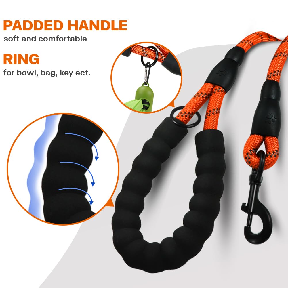 More Durable, Much Safer: This heavy duty dog leash is made of 1/2-inch diameter rock climbing rope which is reinforced with durable woven design. Sturdy enough for medium large dogs